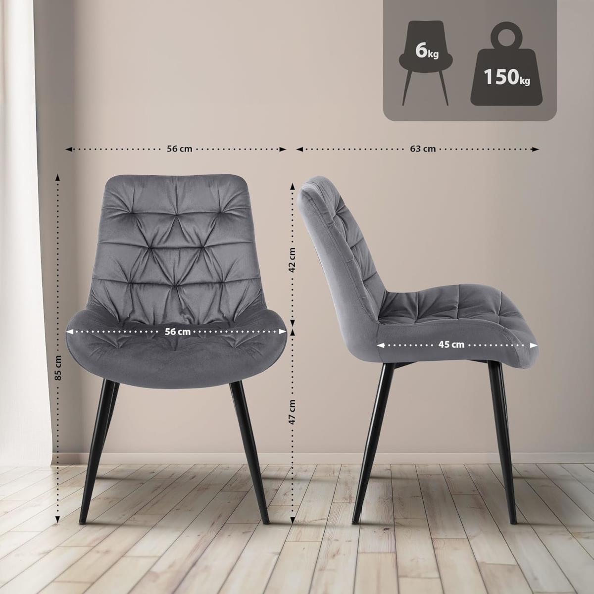 2er-Set Besucherstuhl LENNY, gepolstert, Stahlgestell, aus Samt, Farbe Dunkelgrau