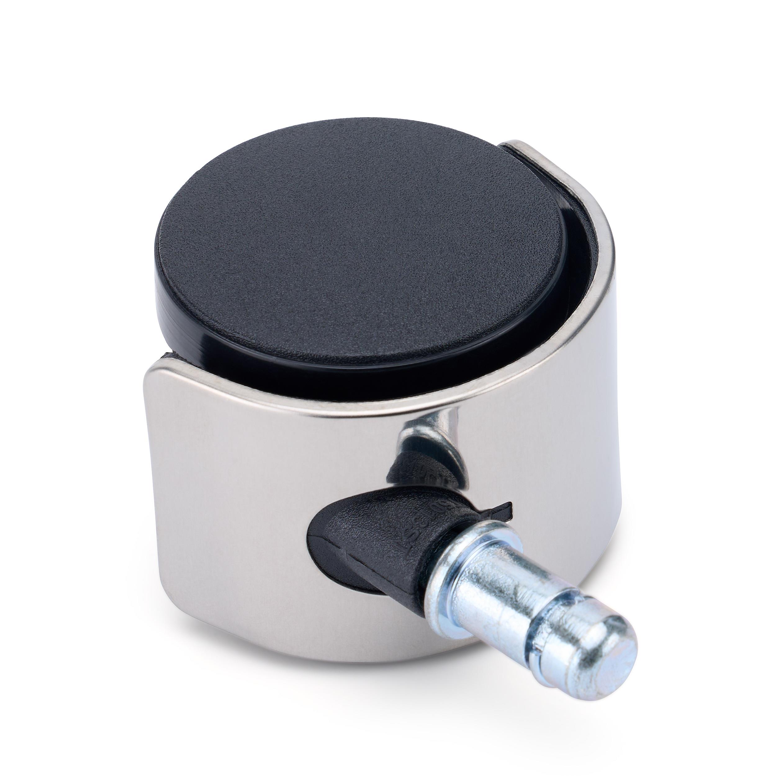 5er Set Bürostuhlrollen COVER, 11x50 mm, verchromtes Design, speziell für Teppichböden, Farbe Silber