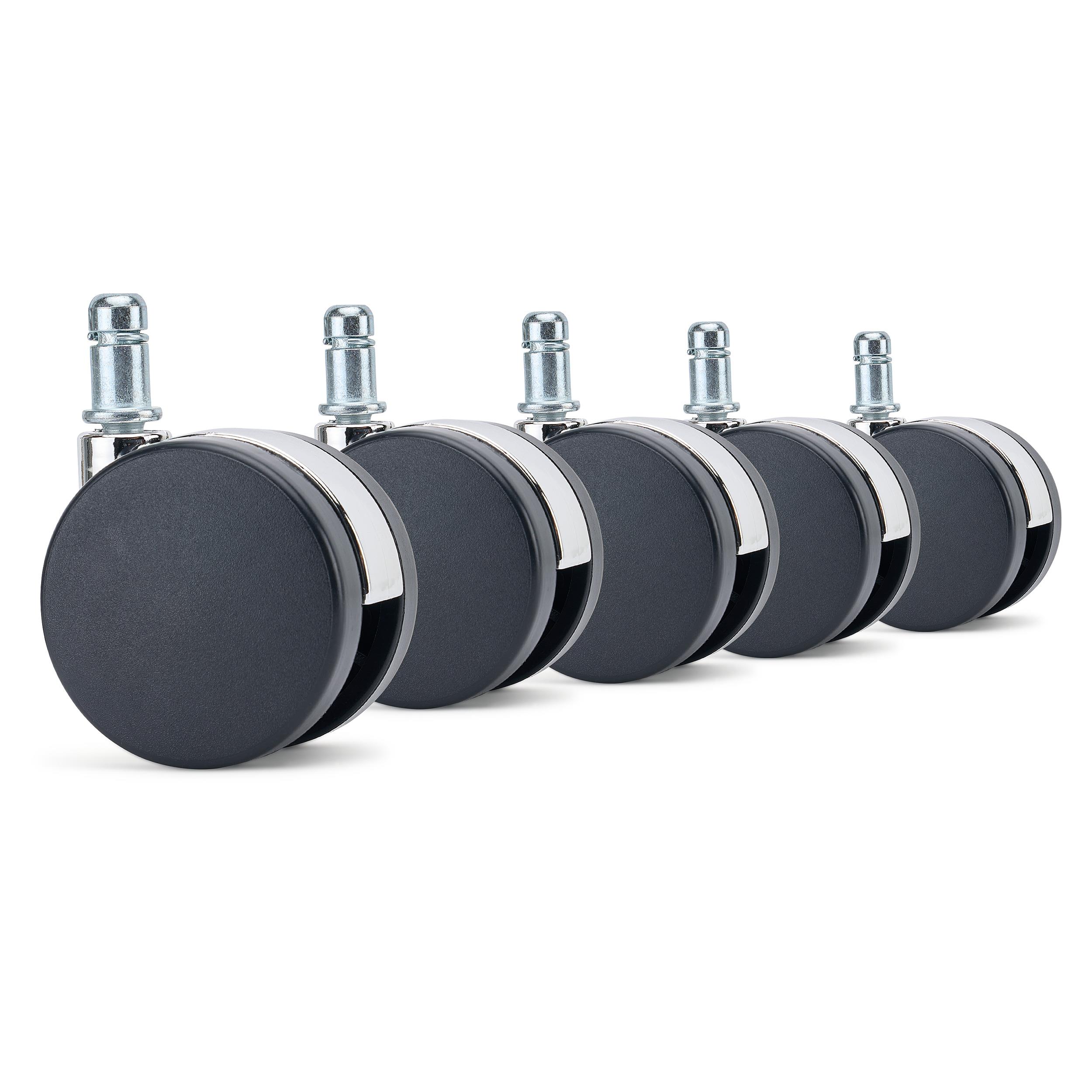 5er Set Hartbodenrollen Bürostühle LYRA, minimalistisches Design, verchromt, Farbe Schwarz