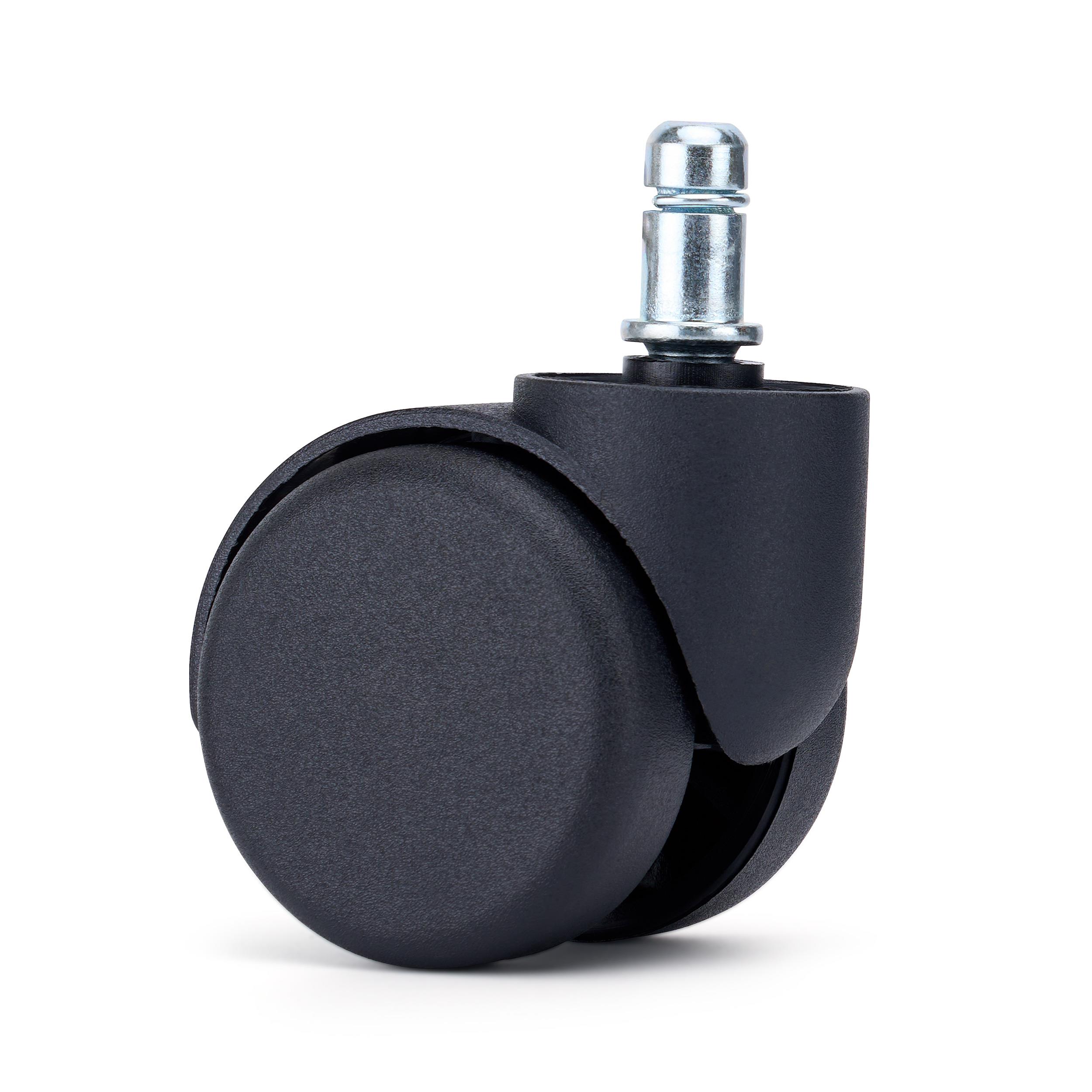Die Rollen haben einen Durchmesser von 60 mm – die perfekte Größe für agile und stabile Bewegungen auf Teppichböden. Darüber hinaus verfügen sie über einen Metallstift mit 11 mm Durchmesser, die mit den meisten Bürostühlen kompatibel ist und eine einfache und schnelle Montage mittels eines Steck-Systems ermöglicht, das ohne Werkzeug eingeklickt wird.