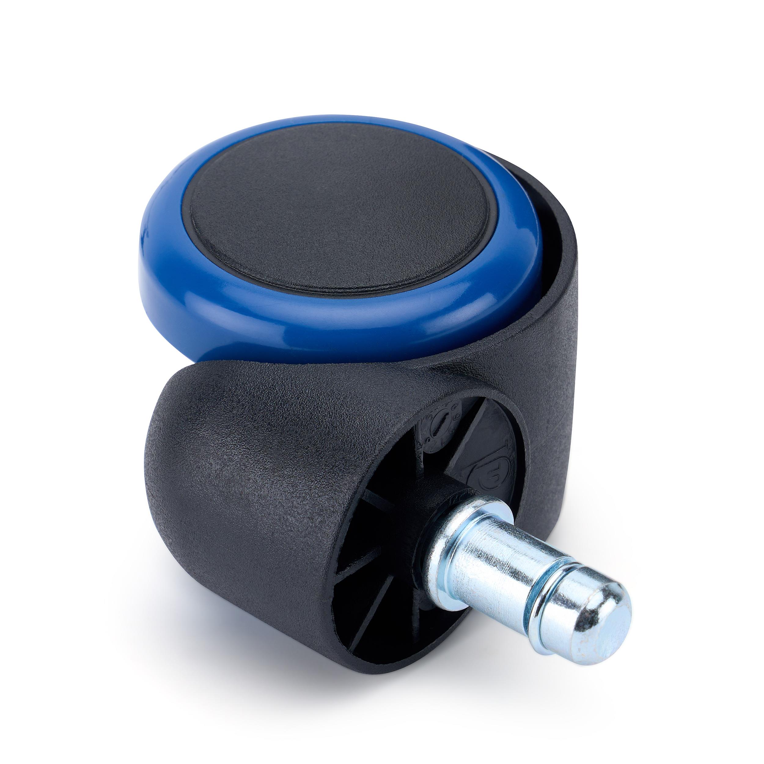 Die Montage ist dank des universellen, bei den meisten Bürostühlen passendem  11-mm-Metallstifts, der für einen festen und dauerhaften Halt sorgt, sehr einfach. Die Vielfalt der erhältlichen Farben ermöglicht eine vollständige Individualisierung, sodass die Rollen perfekt auf die Farbe des Stuhlgestells oder die Details der umgebenden Einrichtung abgestimmt werden können.