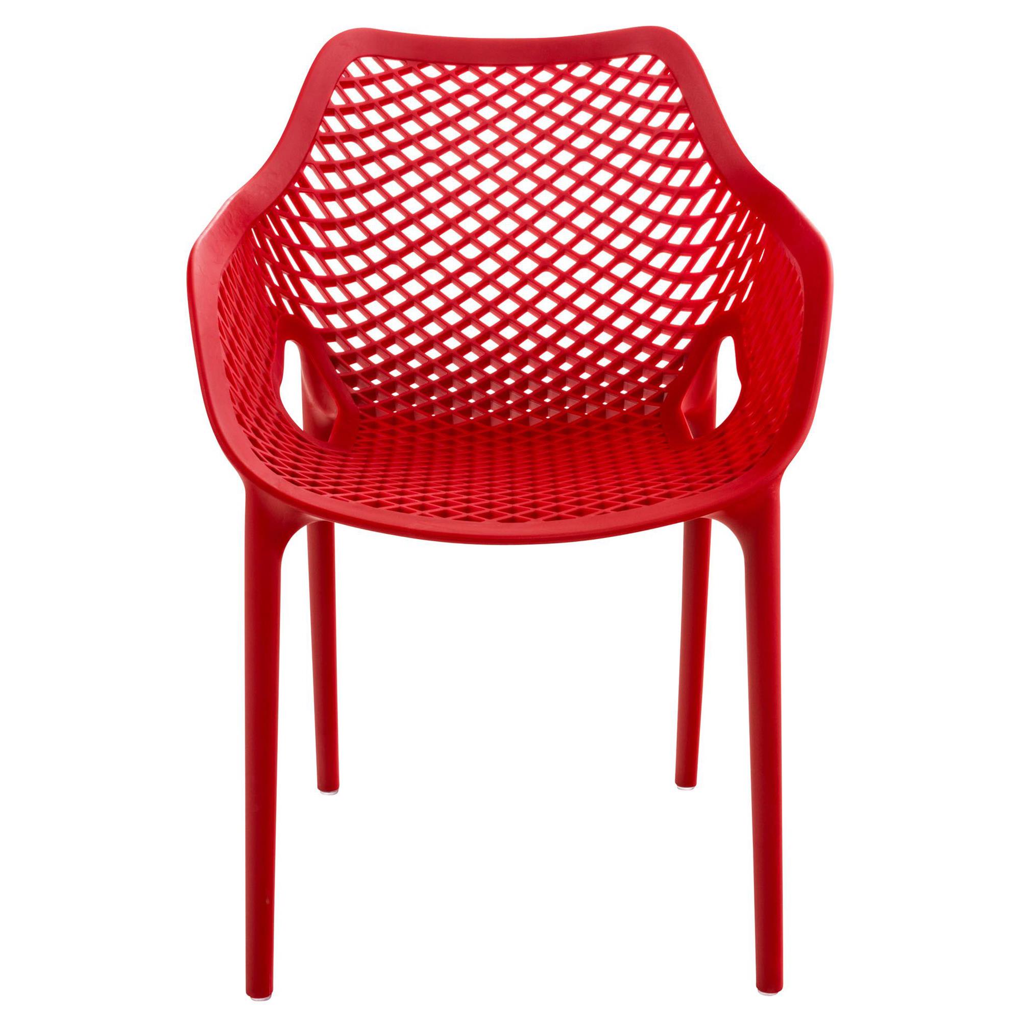 Für die Herstellung dieses Stuhls wurde Polypropylen gewählt, ein Kunststoff, der sich durch seine hohe Widerstandsfähigkeit auszeichnet und zudem sehr leicht zu reinigen ist. Die Sitz- und Rückenschale mit integrierten Armlehnen hat ein ergonomisches Design, das dem Benutzer einen hohen Komfort bietet. Darüber hinaus ist zu beachten, dass es aufgrund seiner Mikroperforation perfekt für wärmere Jahreszeiten geeignet ist.