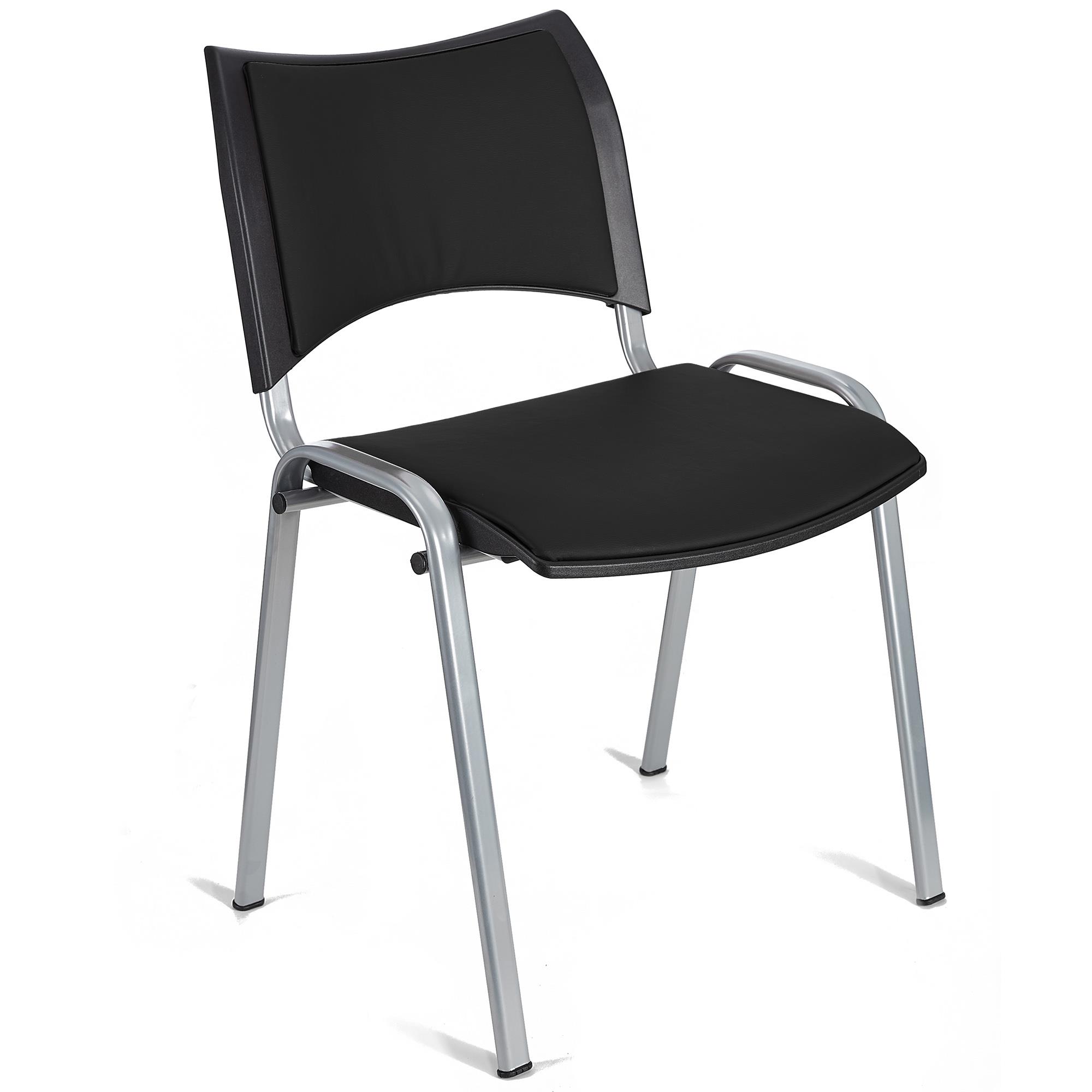 Besucherstuhl ROMEL LEDER, bequeme Polsterung, stapelbar, graue Stuhlbeine, Farbe Schwarz