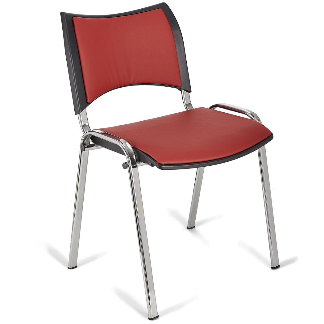 Besucherstuhl ROMEL LEDER, bequeme Polsterung, stapelbar, verchromte Stuhlbeine, Farbe Rot