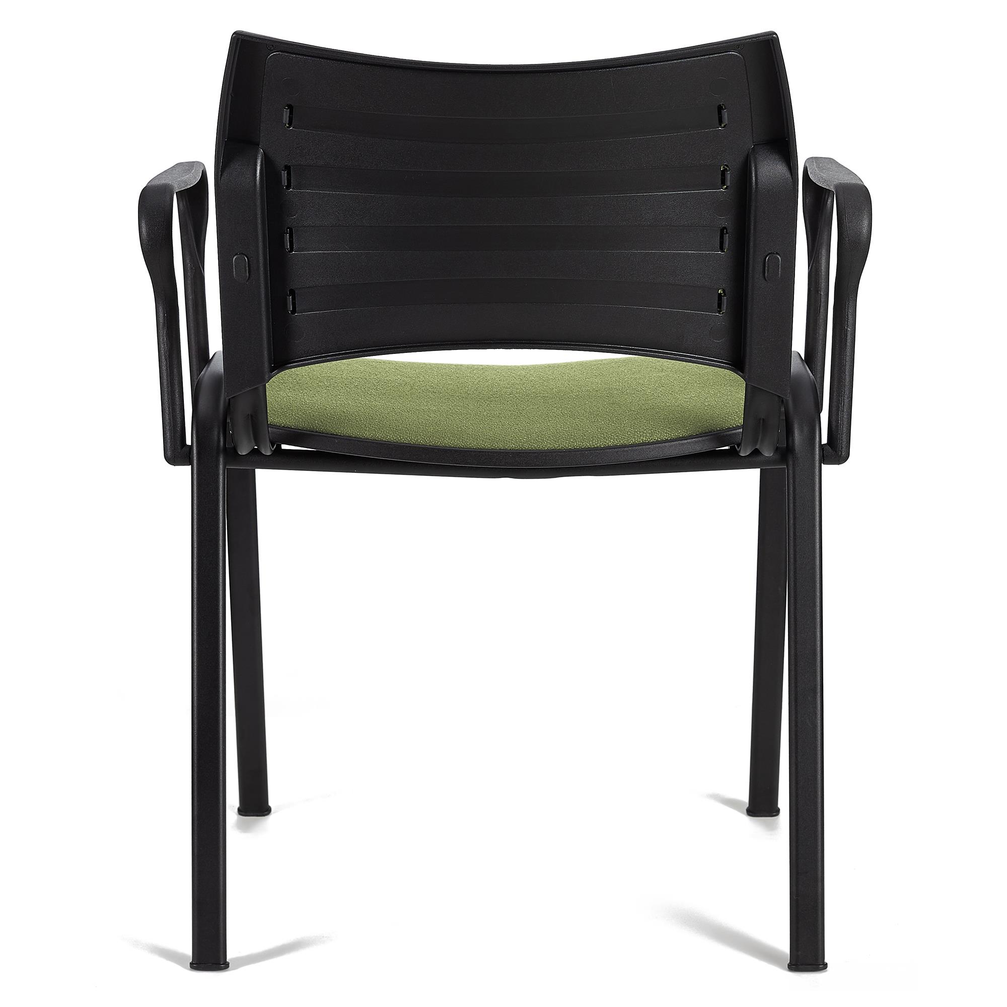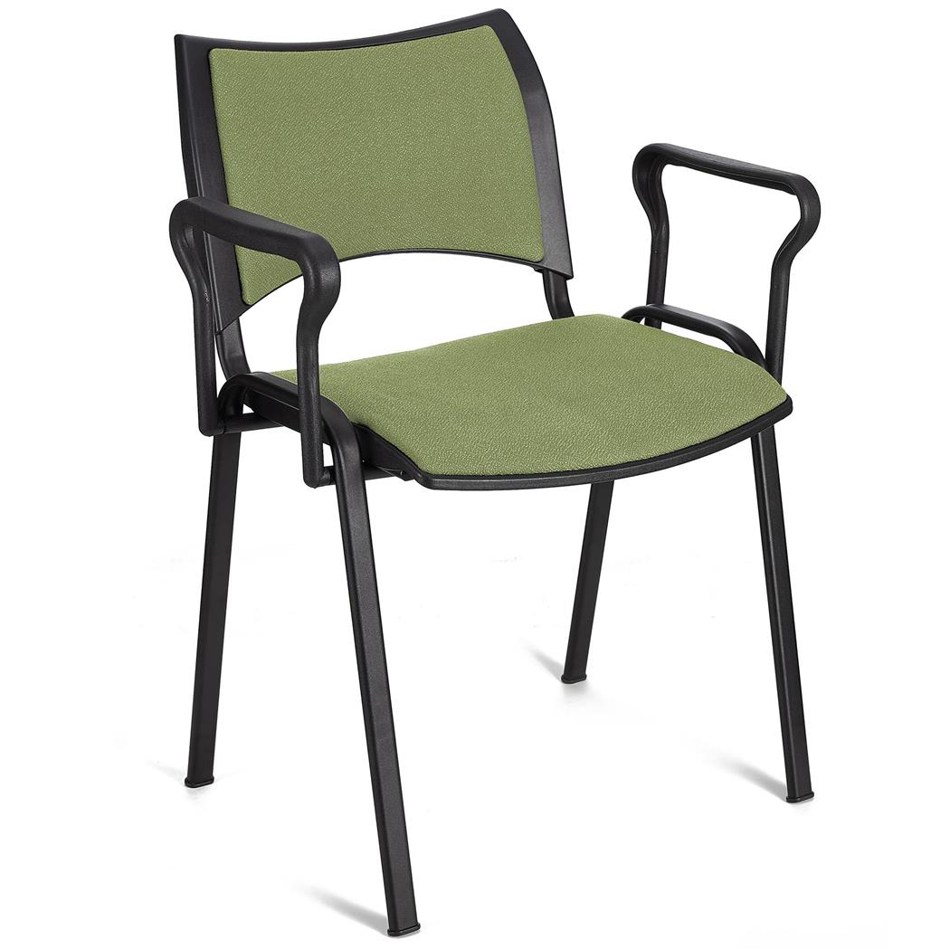 Besucherstuhl ROMEL MIT ARMLEHNEN, bequeme Polsterung, stapelbar, schwarze Stuhlbeine, Farbe Grün