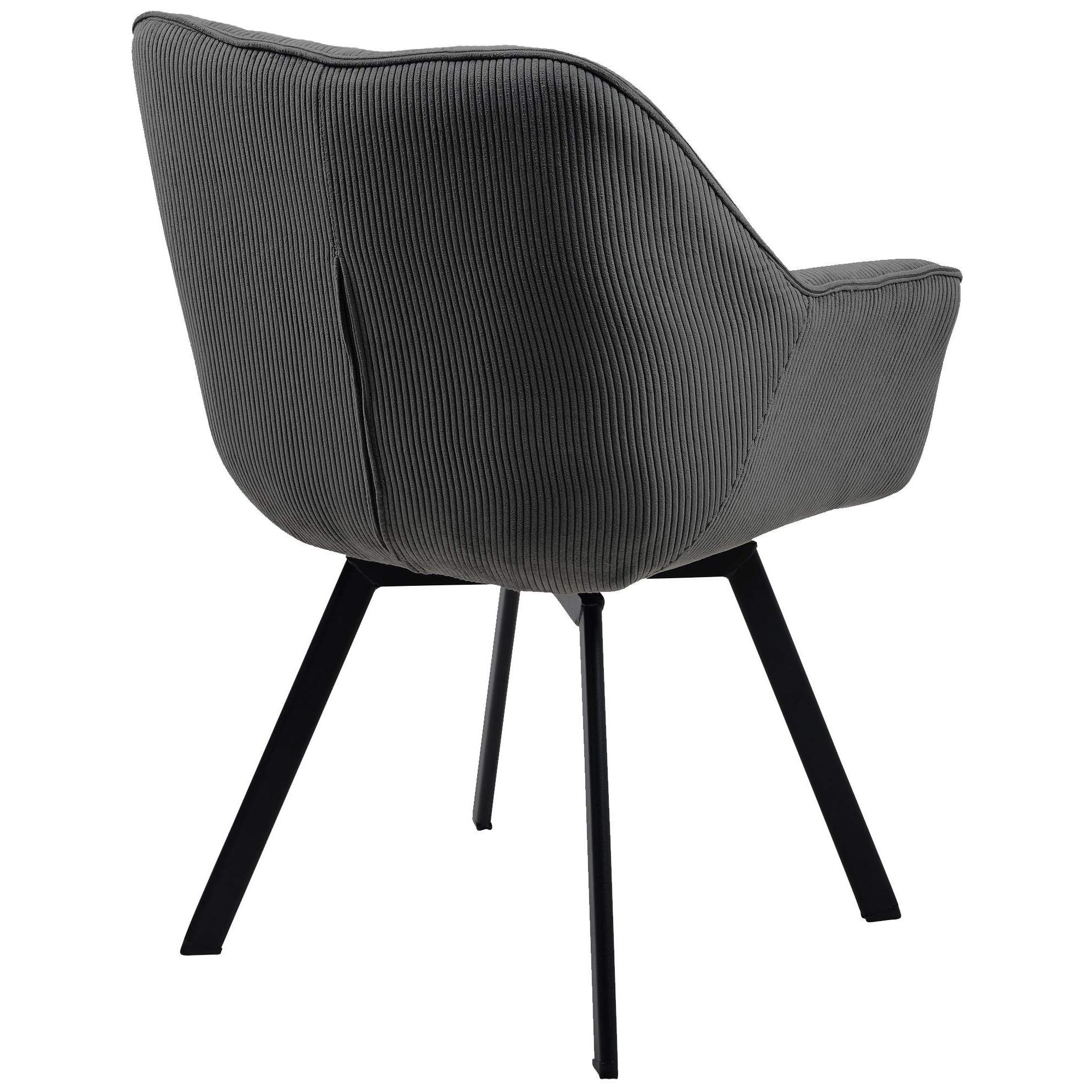 Besucherstuhl TAMMY, schwarzes Metallgestell, angenehm gepolstert, Cord-Stoff, Farbe Dunkelgrau
