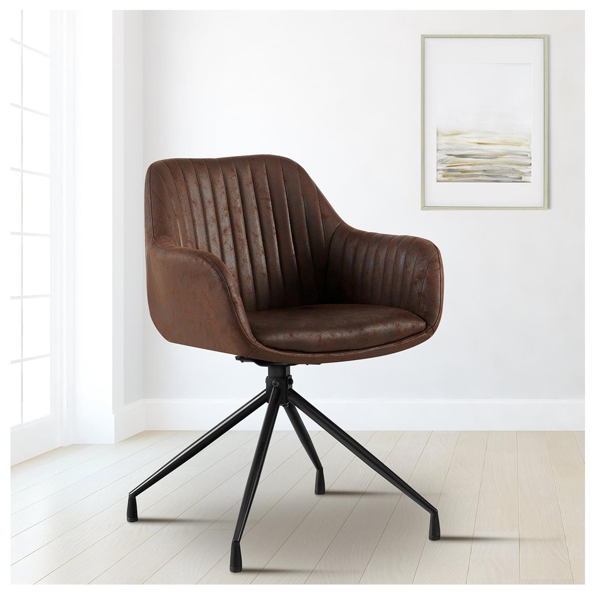 Besucherstuhl TANNER, Metallgestell, drehbar, Vintage-Kunstleder, Farbe Dunkelbraun
