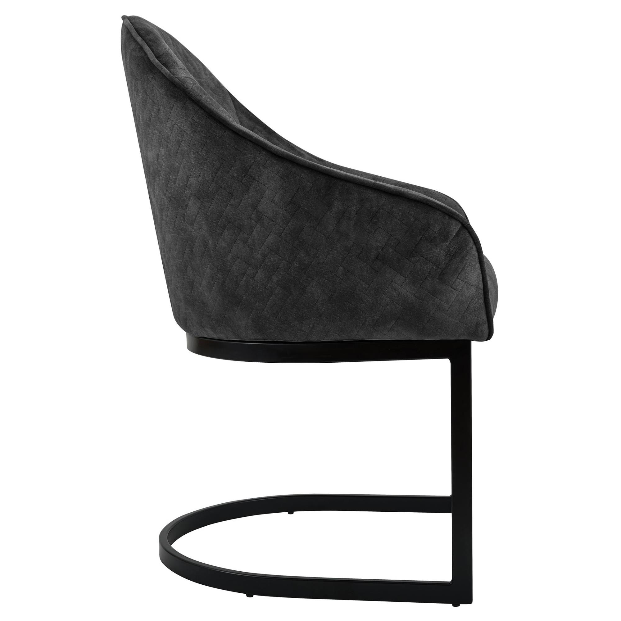In puncto Komfort ist dieser Stuhl für den täglichen Gebrauch konzipiert. Die Sitzfläche und die Rückenlehne sind mit einer bequemen Polsterung ausgestattet, die zusammen mit der ergonomischen Rückenlehne und den integrierten Armlehnen auch über mehrere Stunden hinweg eine bequeme Sitzhaltung gewährleistet. Darüber bietet der Freischwinger ein leichtes, angenehmes Schaukeln beim Sitzen, was das Gefühl von Komfort und Anpassungsfähigkeit im täglichen Gebrauch verbessert.