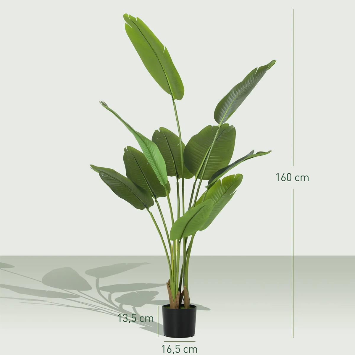Dank ihrer Höhe von 160 cm schmückt sie jeden Raum auf natürliche Weise und bleibt sicherlich nicht unbemerkt. Mit ihren 10 großen Blättern ist sie ein vielseitiges Produkt, das dem Büro einen exotischen und tropischen Touch verleiht.
