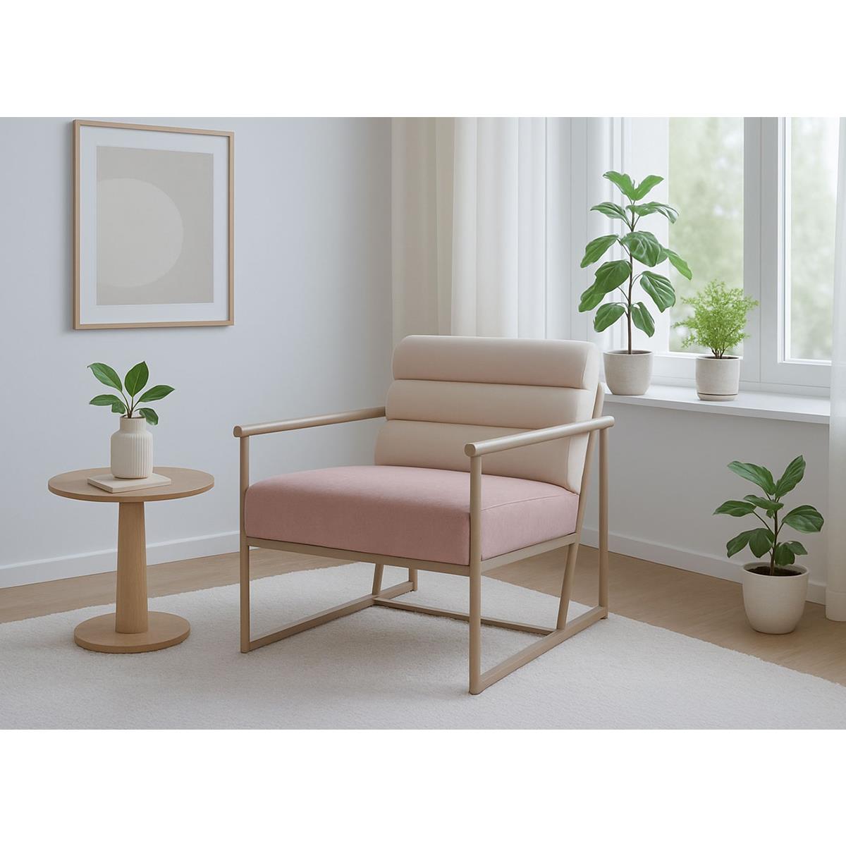 Bürosessel MILLS, Stahlgestell, bequem gepolstert, modernes Design, samtiger Stoffbezug, Farbe Beige/ Rosa