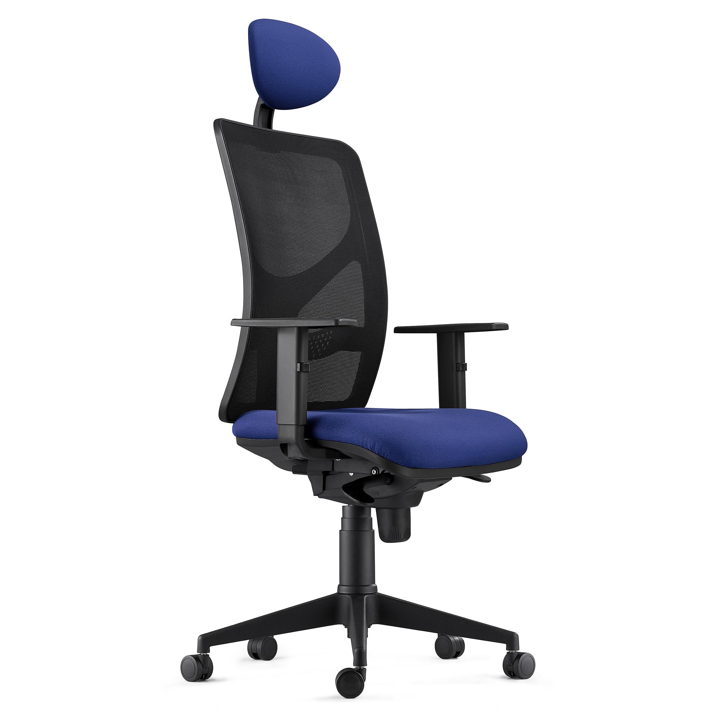 Bürostuhl BAIKAL STOFF, verstellbare Armlehnen, Lordosenstütze, Farbe Dunkelblau