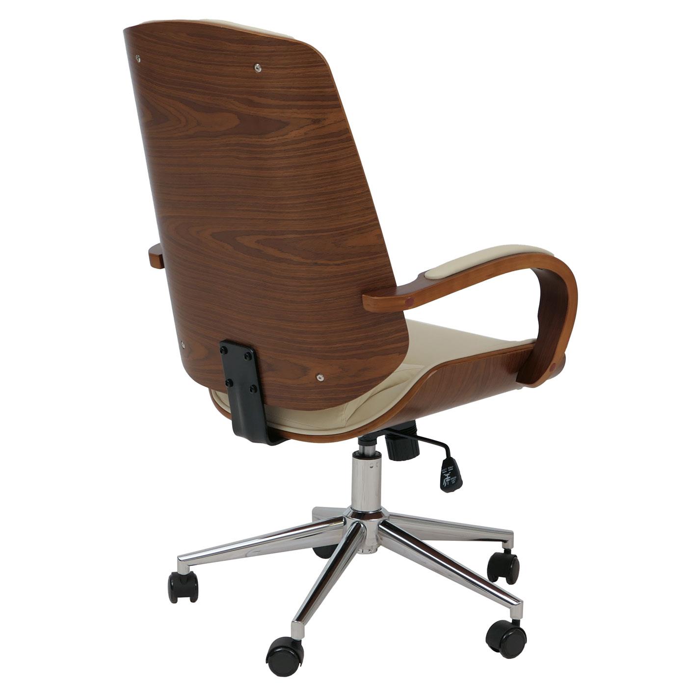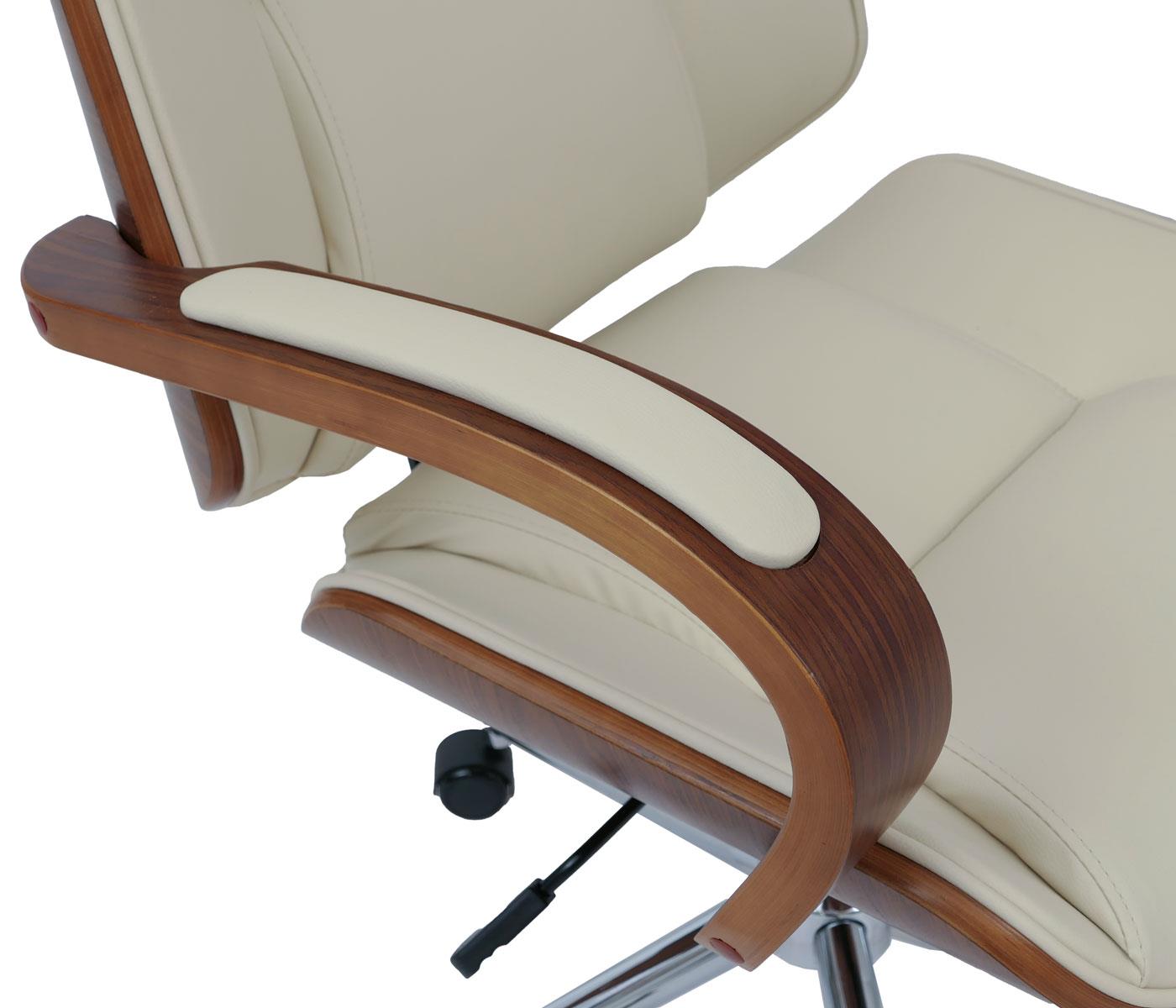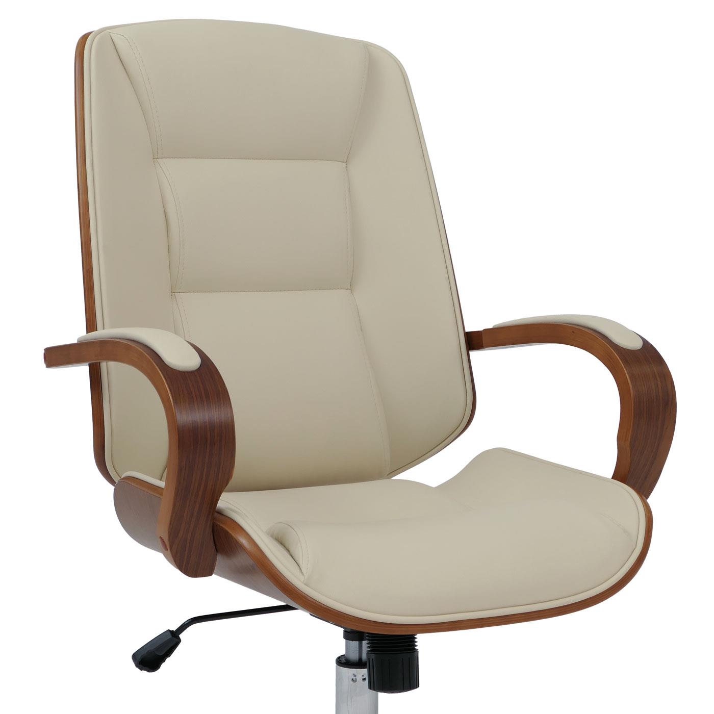 Bürostuhl CLARIN, elegantes Design, aus Nussbaum und Kunstleder, Creme