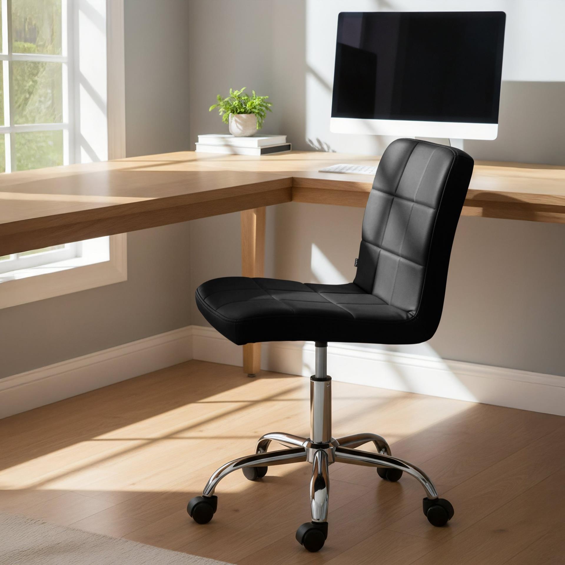 Wir präsentieren den Bürostuhl CLIP, ein funktionales und vielseitiges Modell, das sich durch sein attraktives, modernes Design auszeichnet. Dieser praktische Stuhl ist dank seiner kompakten Abmessungen ohne Armlehnen ideal für kleine Räume, da er sich leicht aufstellen und verschieben lässt. Das perfekte Modell, um es mit der Einrichtung Ihres Büros oder Ihrer Wohnung zu kombinieren.