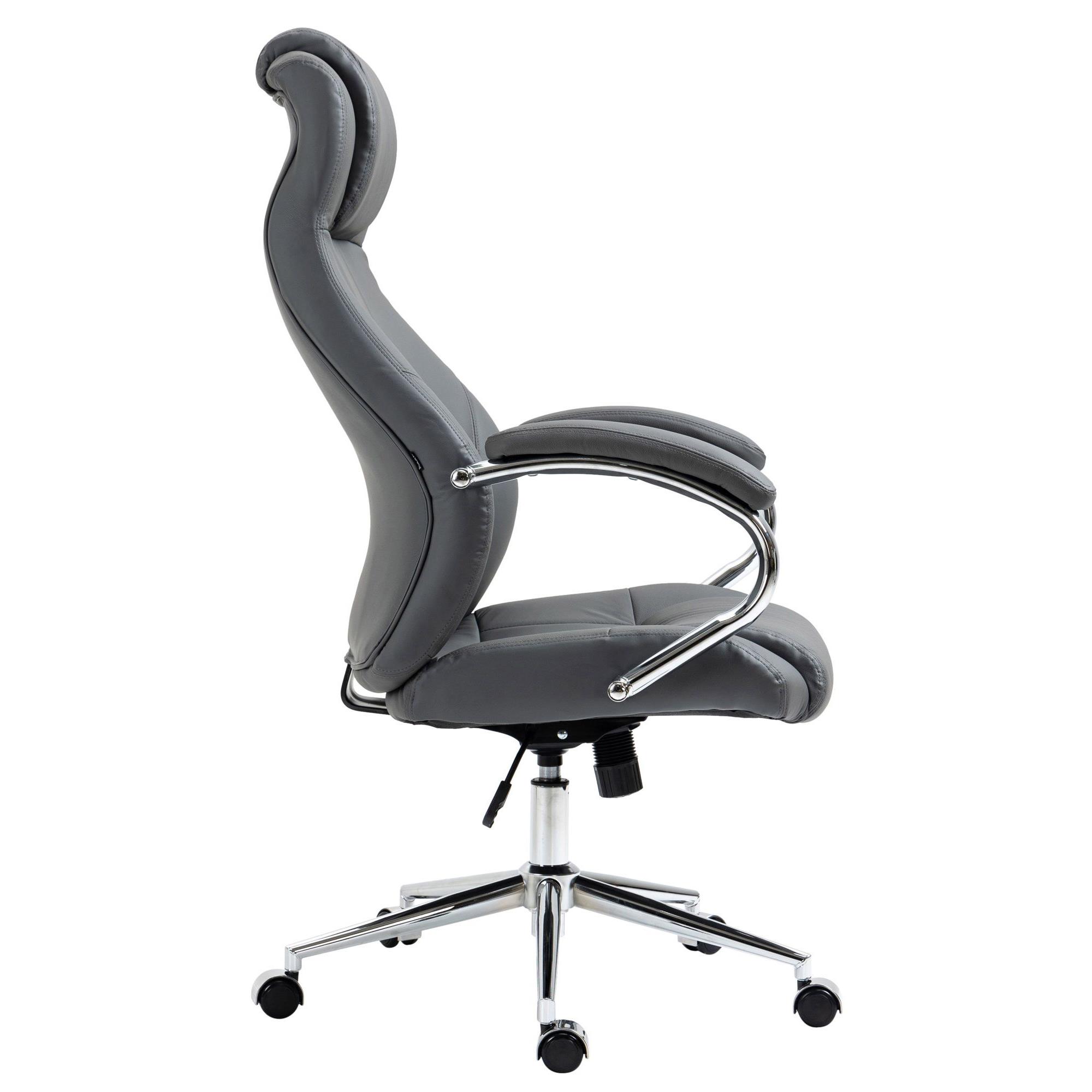 Die dick gepolsterte Sitzfläche und Rückenlehne bieten einen hohen Komfort und sind somit ideal für lange Arbeitstage. Erwähnenswert ist auch sein ergonomisches Design. Die geschwungene Form der Rückenlehne, die integrierte Kopfstütze und die gepolsterten Armlehnen sind wichtige Elemente, um eine gesunde Haltung zu bewahren.