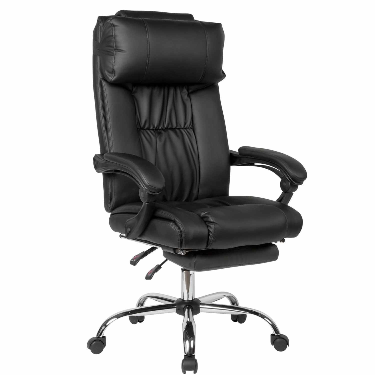 Chefsessel NANDO, ausziehbare Fußstütze, stufenlose Rückenlehnenneigung, abnehmbares Nackenkissen, Kunstleder, Farbe Schwarz