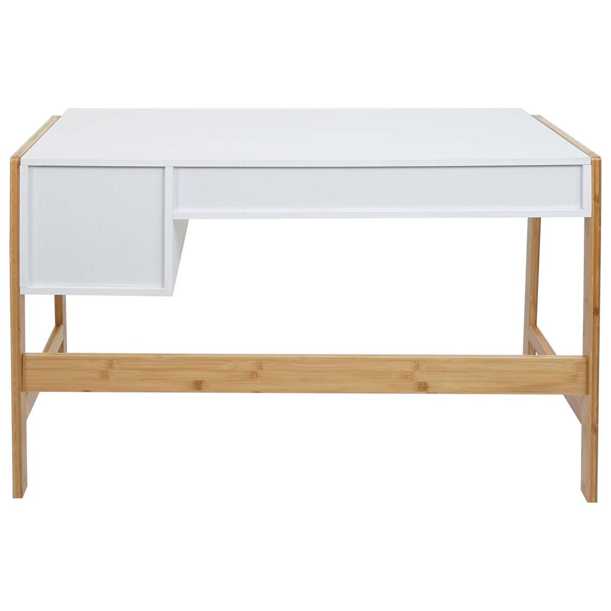 Computertisch PORTO, Abmessungen 115 x 58 x 76 cm, aus Holz, Farbe Weiß und Bambus