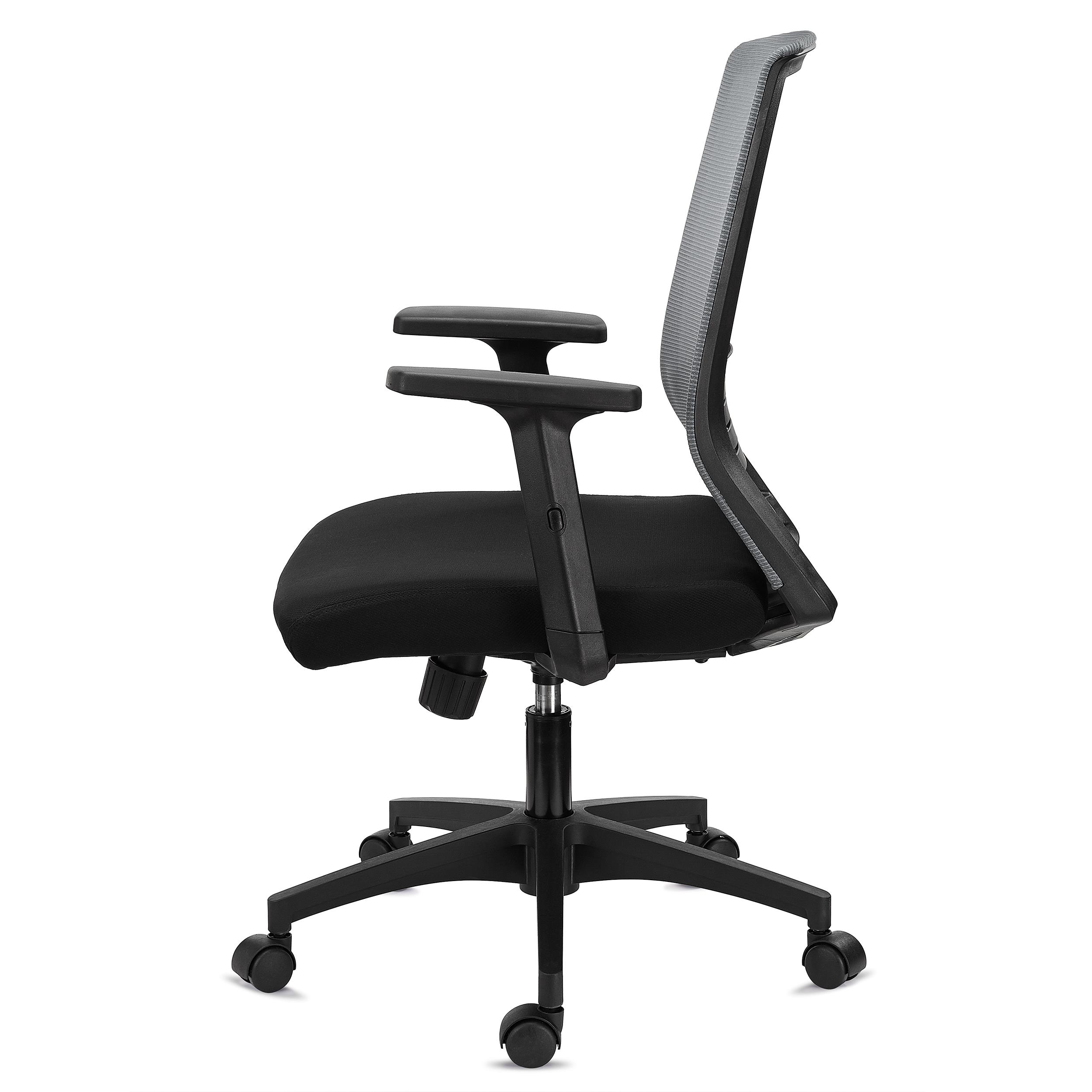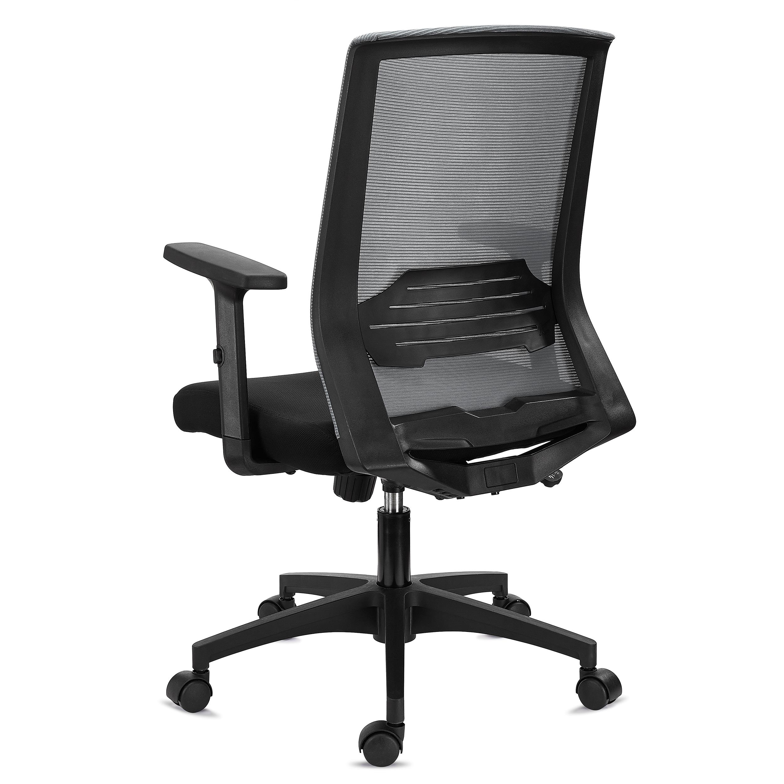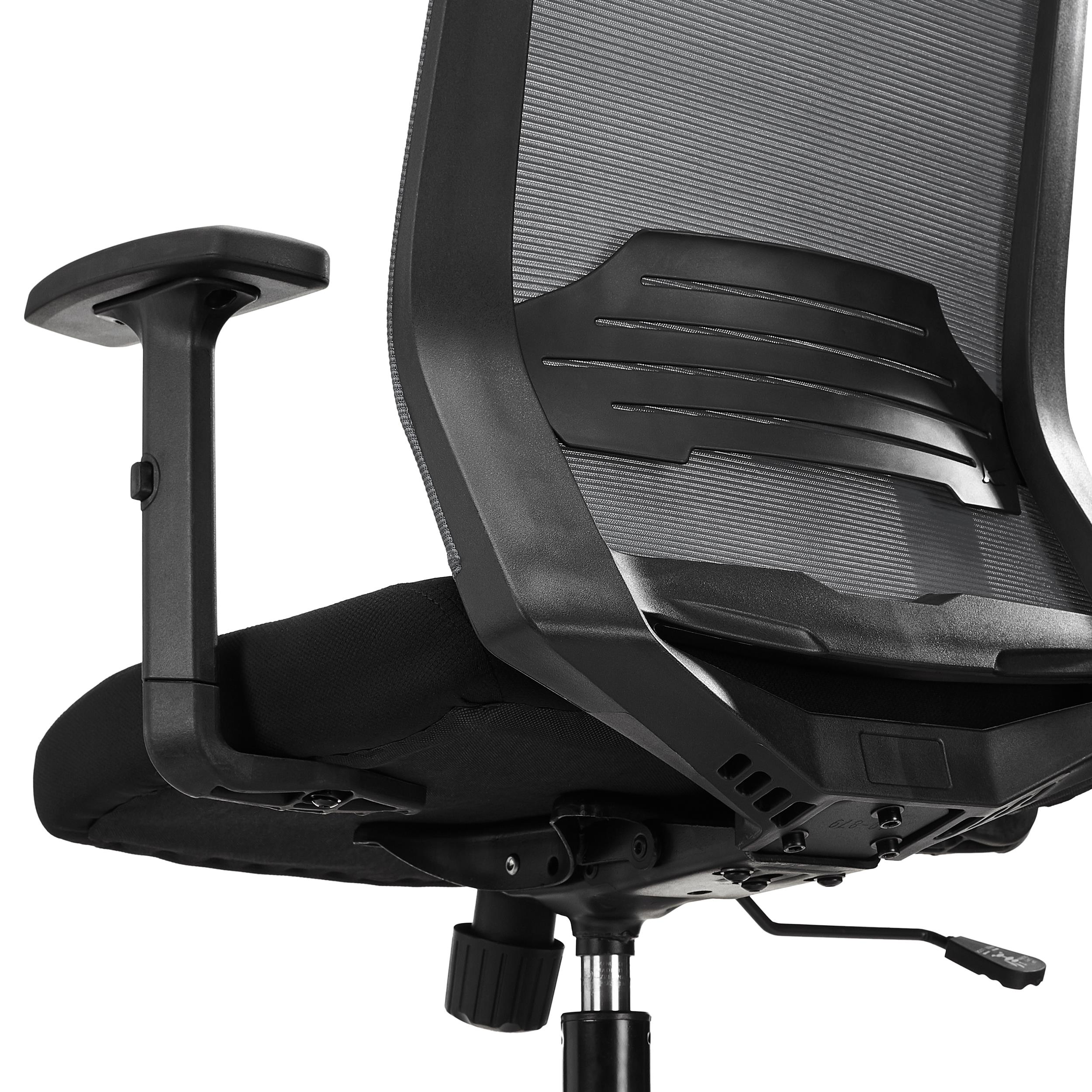 Das robuste Design der Rückenlehne fällt auf. Die Rückenlehne dieses Stuhls gewährleistet eine optimale Stützung. Der atmungsaktive Netzbezug und die flexible Lordosenstütze garantieren für einen optimalen Sitzkomfort für den langen Arbeitstag.