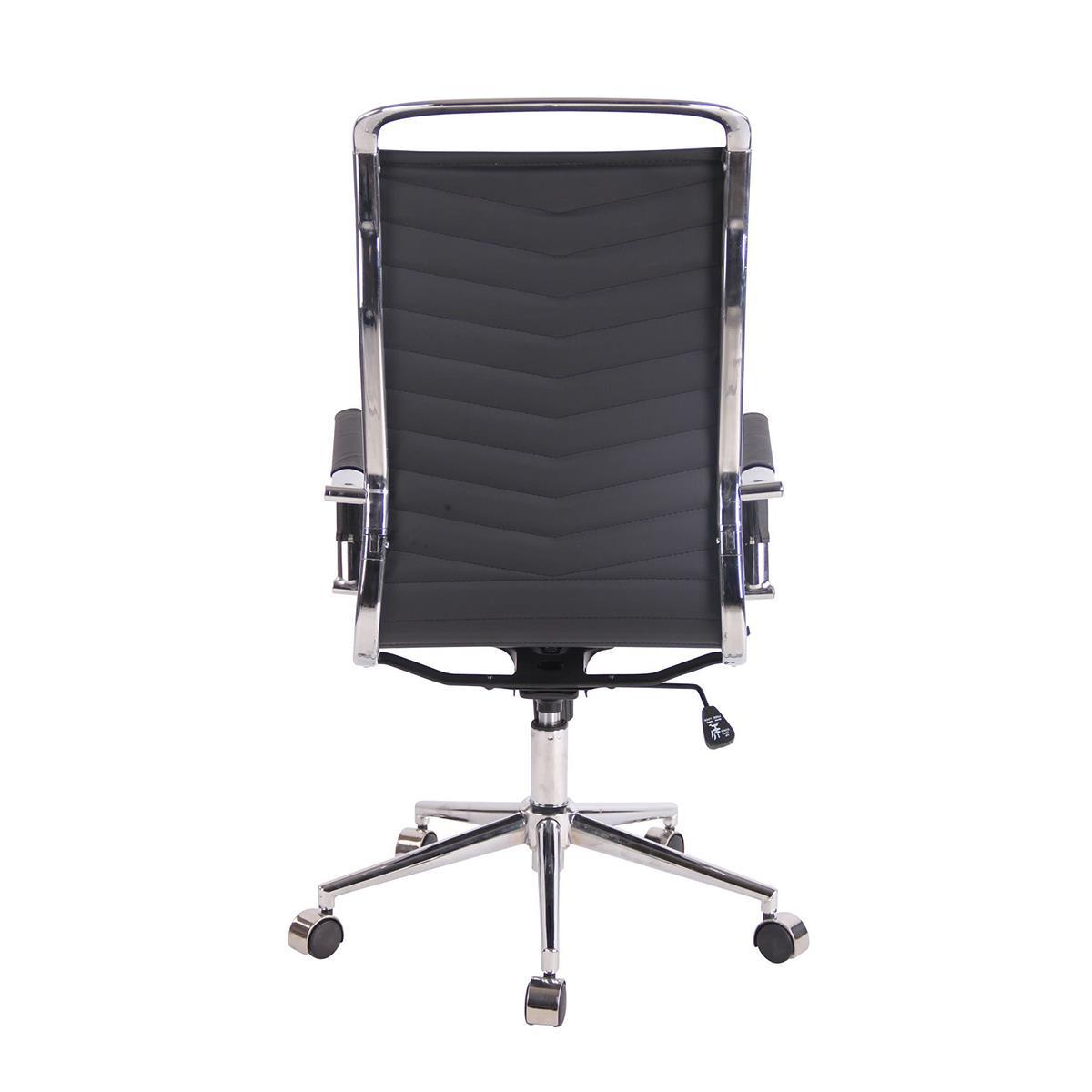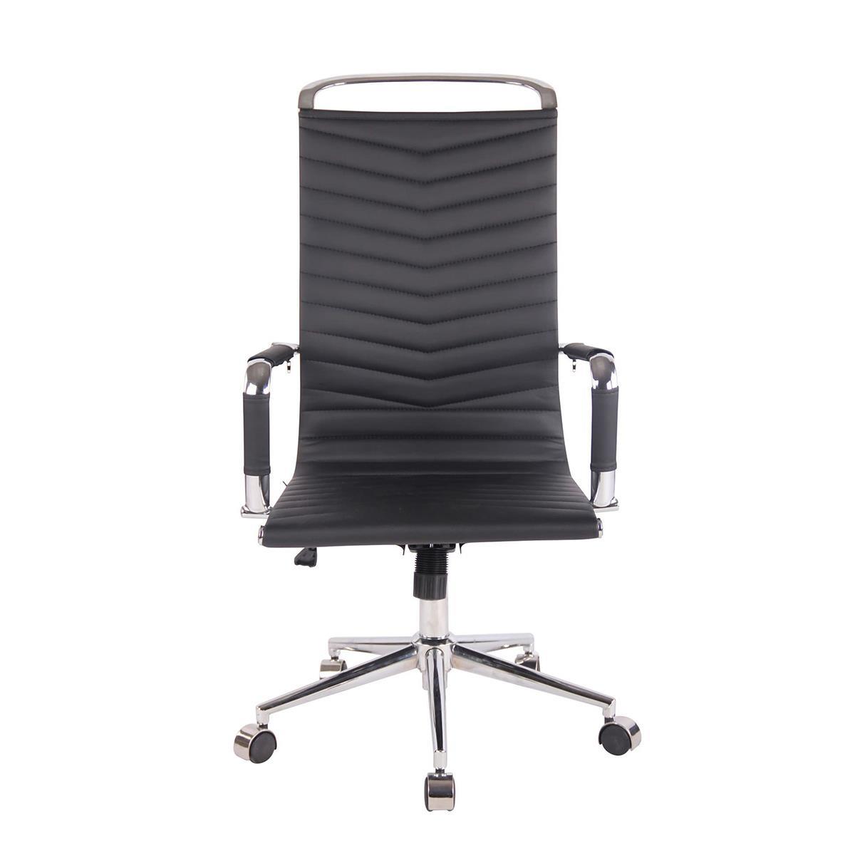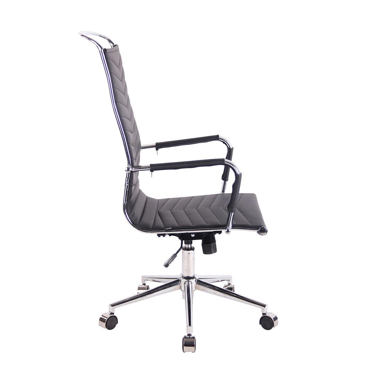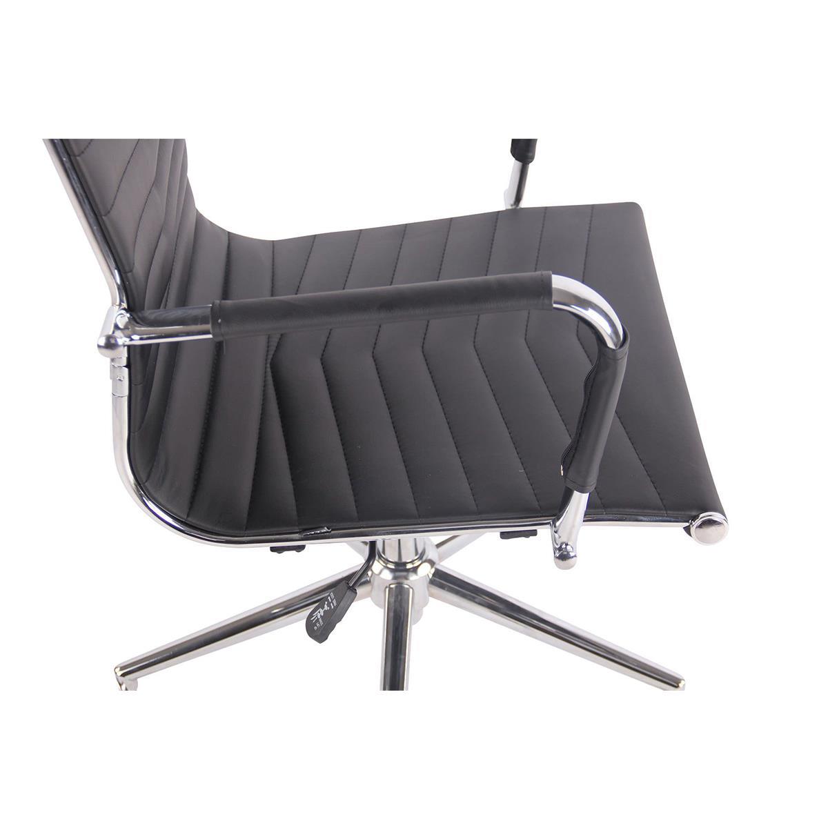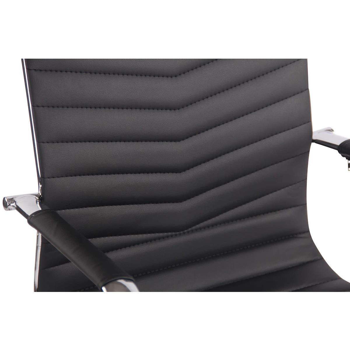 Gestell und Fußkreuz sind aus verchromtem Stahl, was den Stuhl robust macht. Auch verfügt der Stuhl über stylische Design-Armlehnen aus verchromtem Stahl, die mit Kunstlederauflagen bezogen sind.