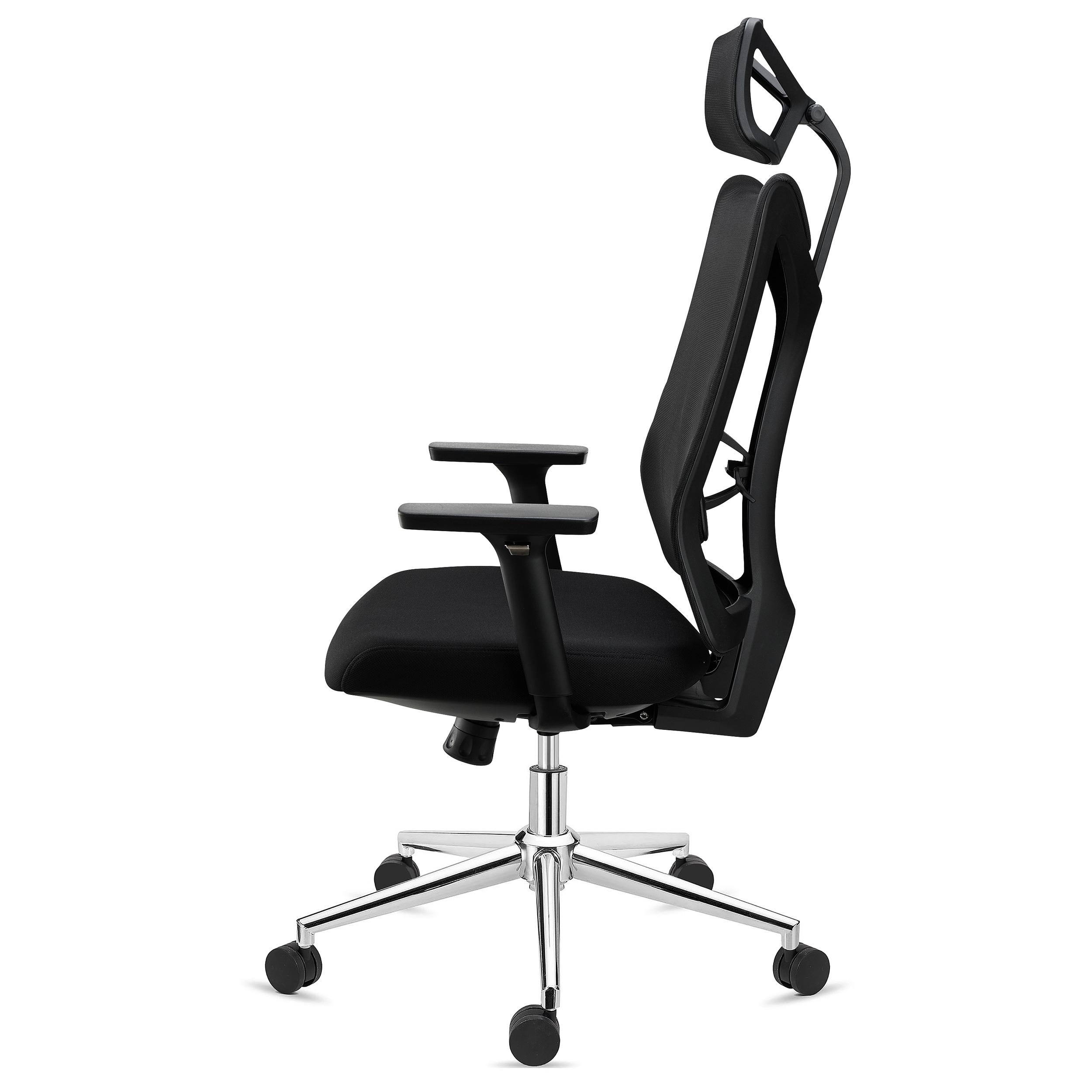 Die Design-Armlehnen mit 3D-Verstellung (Höhe, Tiefe und Winkel) runden dieses Produkt mit hohen Anforderungen ab. Details wie seine Chromeinsätze und die weichen Auflagen komplettieren dieses Qualitätsprodukt.