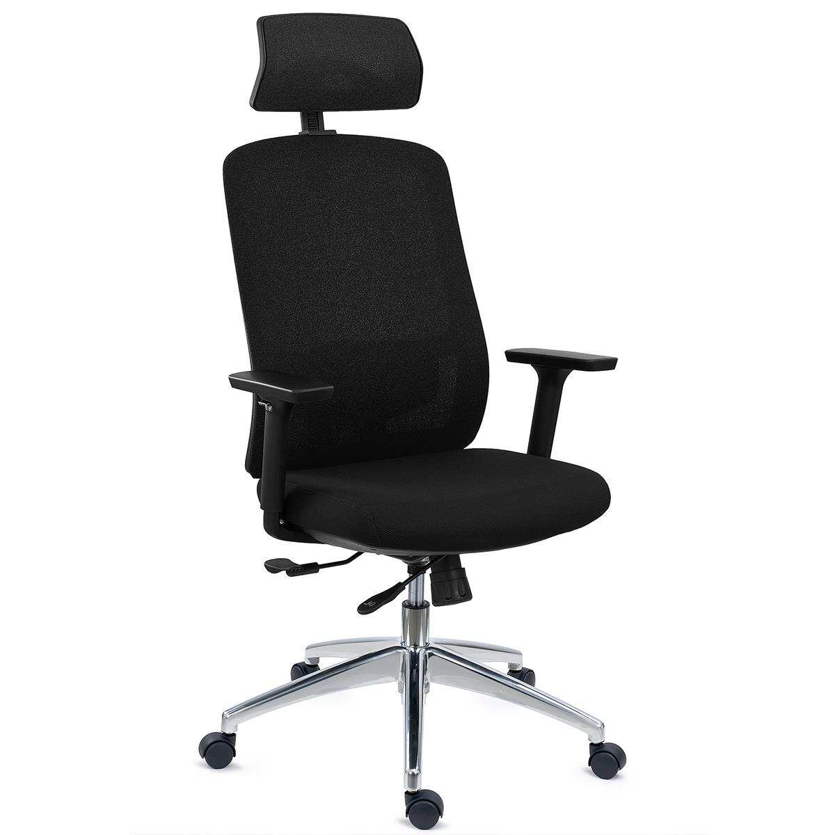 DEMO# Ergonomischer Bürostuhl ASTRA LUX, tiefenverstellbare Sitzfläche, Kopfstütze, Synchron-Mechanik, Farbe Schwarz