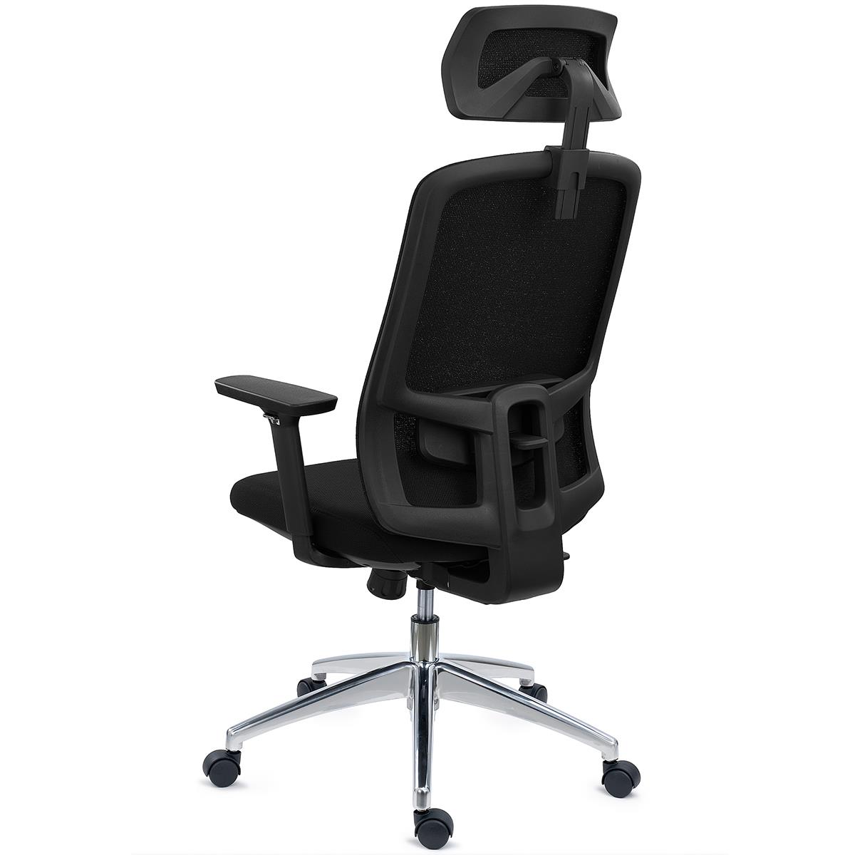 Die Rückenlehne aus atmungsaktivem Netzgewebe ist mit einer höhenverstellbaren Lendenwirbelstütze ausgestattet. Ein weiteres wichtiges Merkmal dieses Modells, denn der untere Rücken ist eine der empfindlichsten Stellen des Körpers. Die Wölbung und die durchdachten Formen bieten dem Rücken eine optimale Unterstützung, die für eine intensive Nutzung in der Sicherheit unerlässlich ist. Dabei ist die bequeme in Höhe und Neigung verstellbare Kopfstütze ein Zubehör, das vor allem beim Zurücklehnen und Ausruhen ein Plus darstellt.