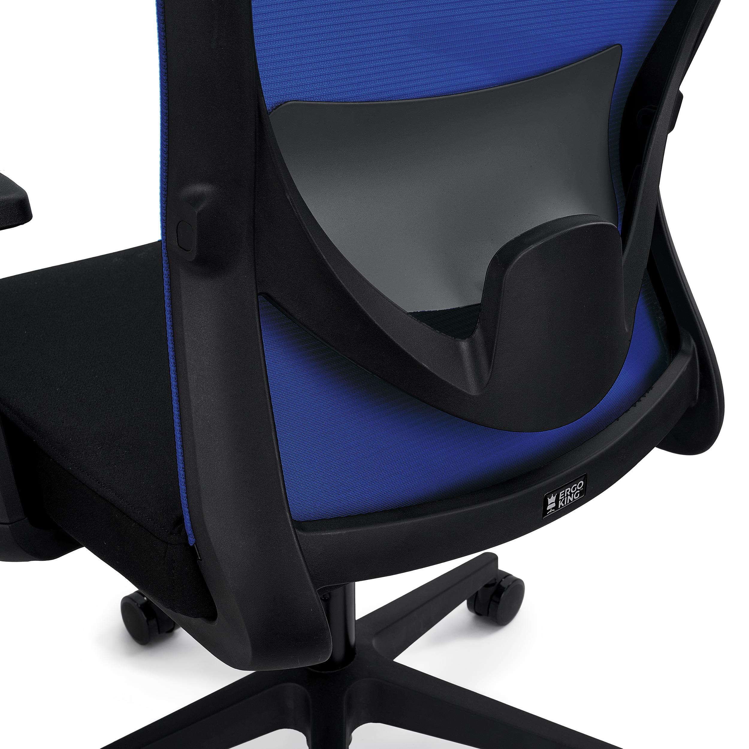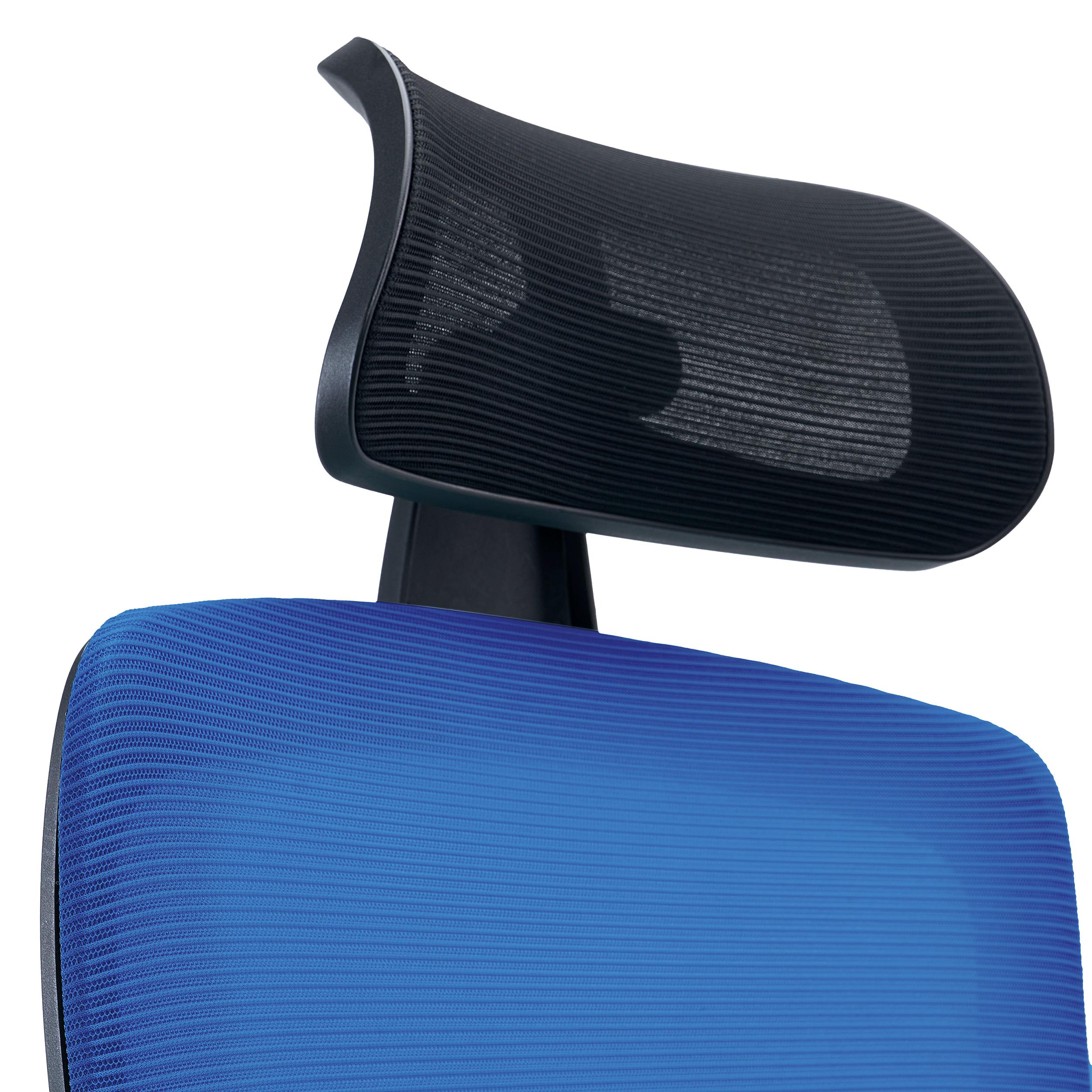 DEMO# Ergonomischer Bürostuhl NOTE PRO, 8h Nutzung, verstellbare Lordosenstütze, Kopfstütze, Netzstoff und Stoff, Blau