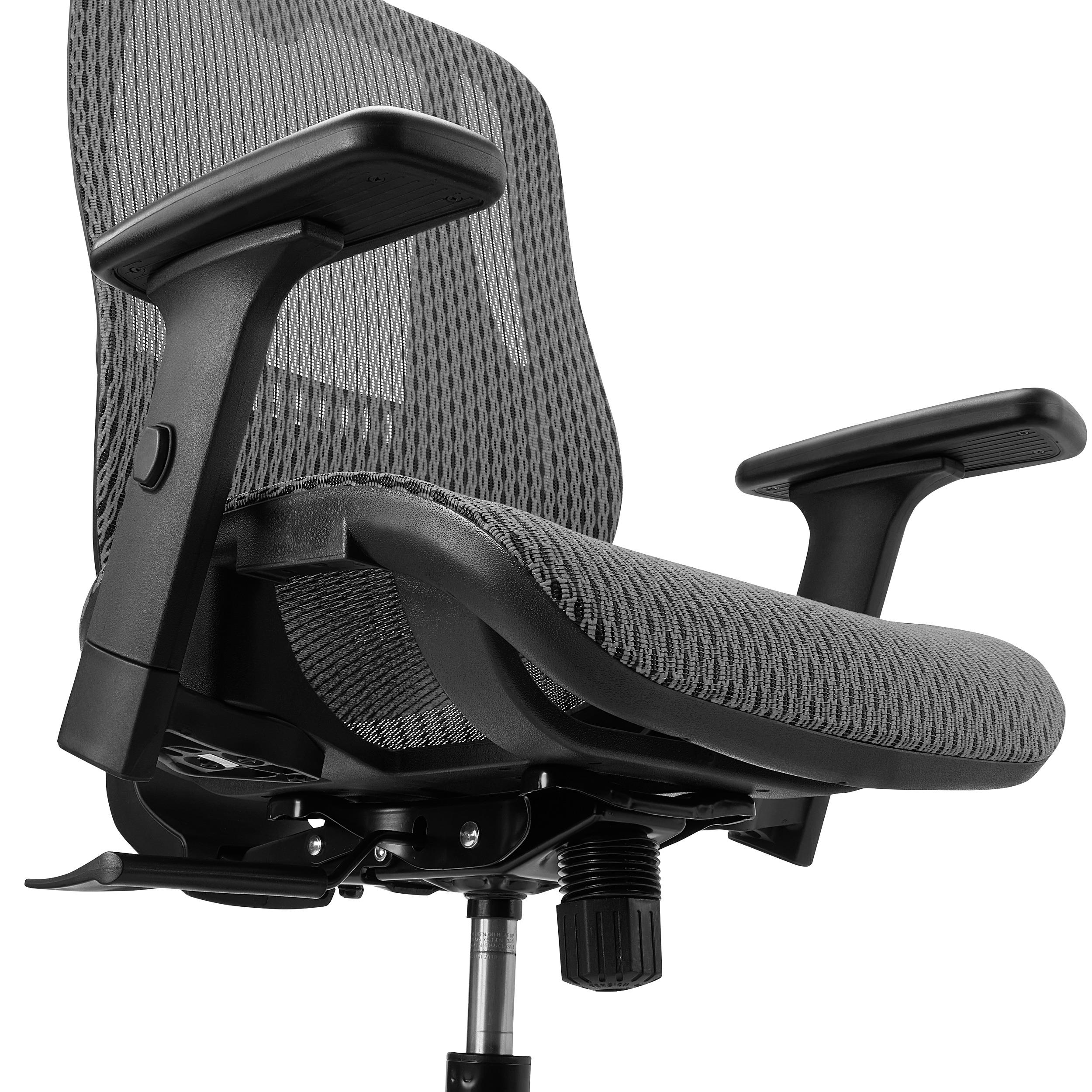 Eine weitere Innovation ist sein ausgeklügelter synchronisierter Rückstellmechanismus. Dieses System verfügt über 3 verschiedene Feststellpositionen, sowie eine regulierbare Rücklehnhärte und verschafft Ihnen somit eine grössere Bewegungsfreiheit.