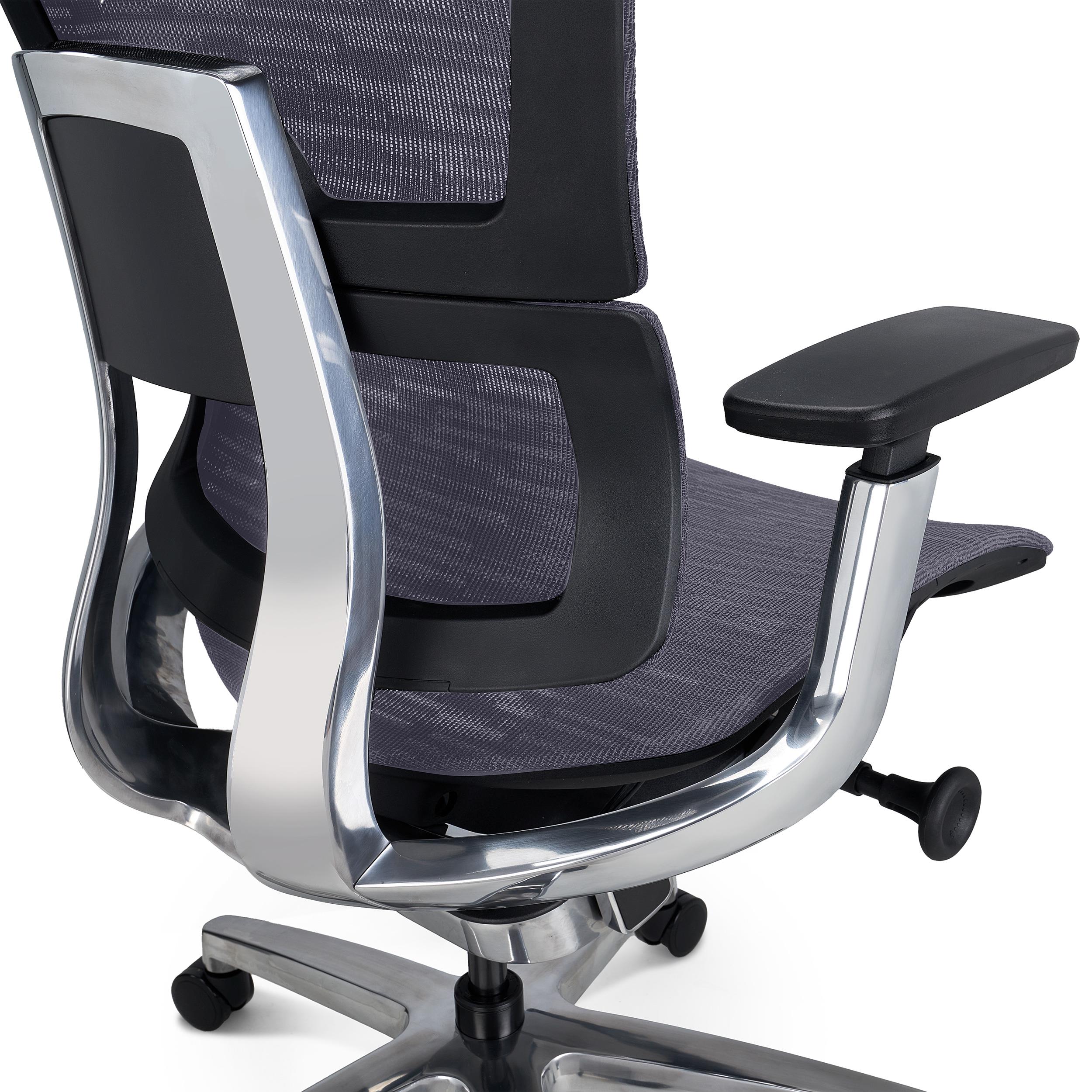 Rückenlehne und Sitzfläche sind mit besonders hochwertigem Netzgewebe bezogen, dass nicht nur atmungsaktiv ist, sondern auch ein angenehme, weiche Haptik besitzt. Zudem ist die Rückenlehne höhenverstellbar und verfügt über eine flexible Lendenwirbelstütze, die sich an den Benutzer anpasst, so dass sie stets eine korrekte und unterstützte Haltung fördert, was bei stundenlangem Sitzen unerlässlich ist.