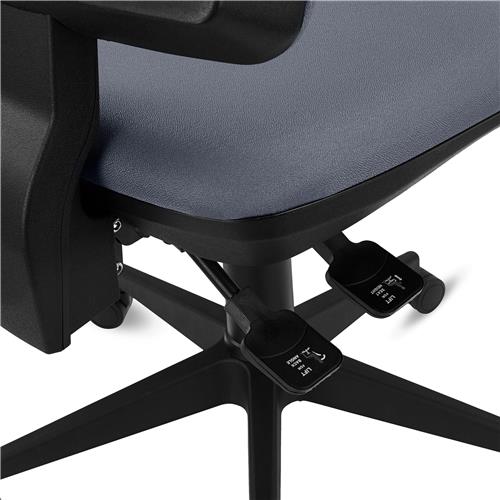 Besonders hervorzuheben ist die in diesem Modell integrierte Synchronmechanik. Die Neigung der Rückenlehne sowie die Neigung und Höhe des Sitzes können individuell mittels drei verschiedener Hebel eingestellt und angepasst werden. Auf diese Weise werden die Vorteile der Wippmechanik, bei der Rücklehne und Sitz nach hinten geneigt werden können, mit der Möglichkeit einer unabhängigen Einstellung der Rückenlehnenneigung kombiniert.
