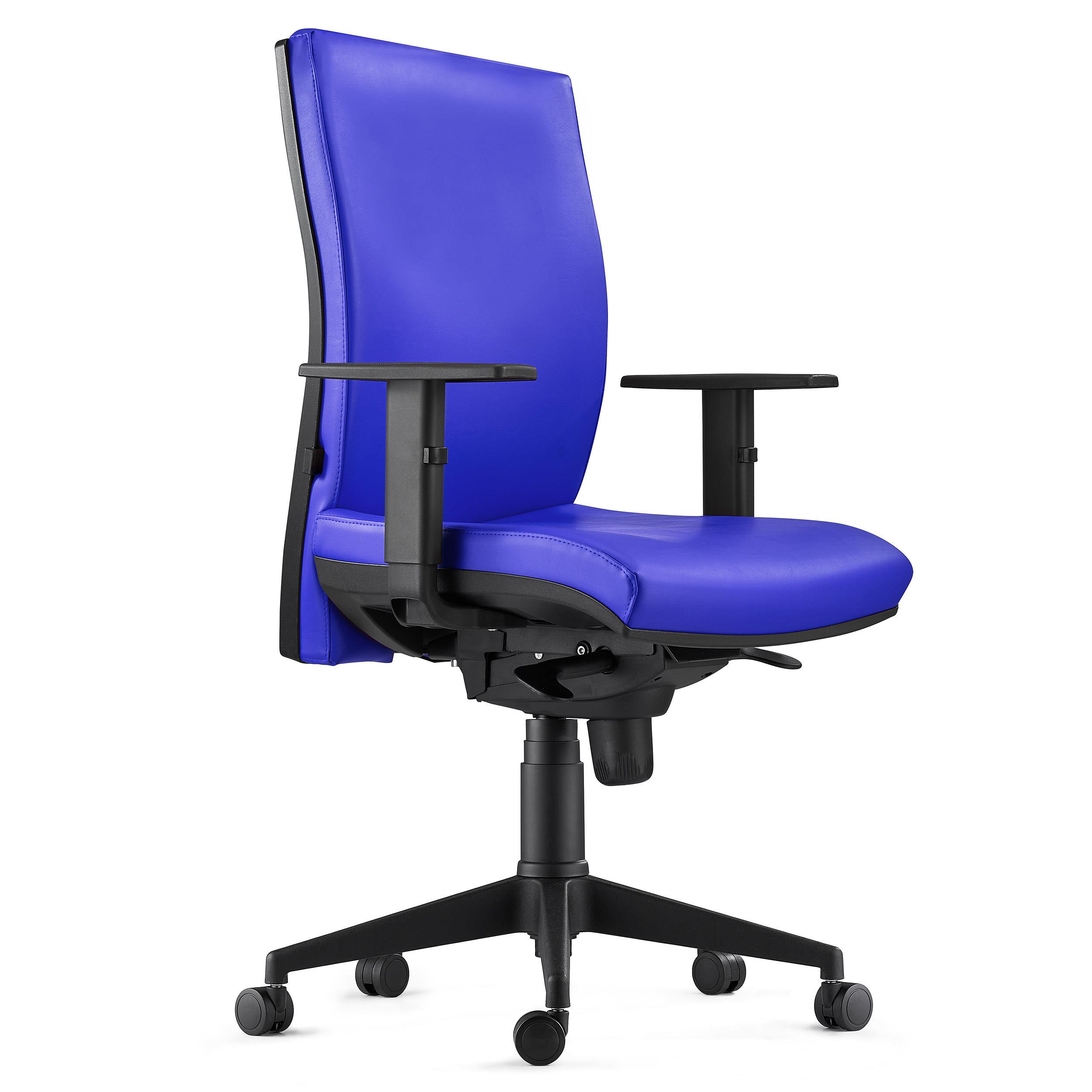Ergonomischer Bürostuhl KEVIN LEDER, mit Lordosenstütze, Farbe Blau