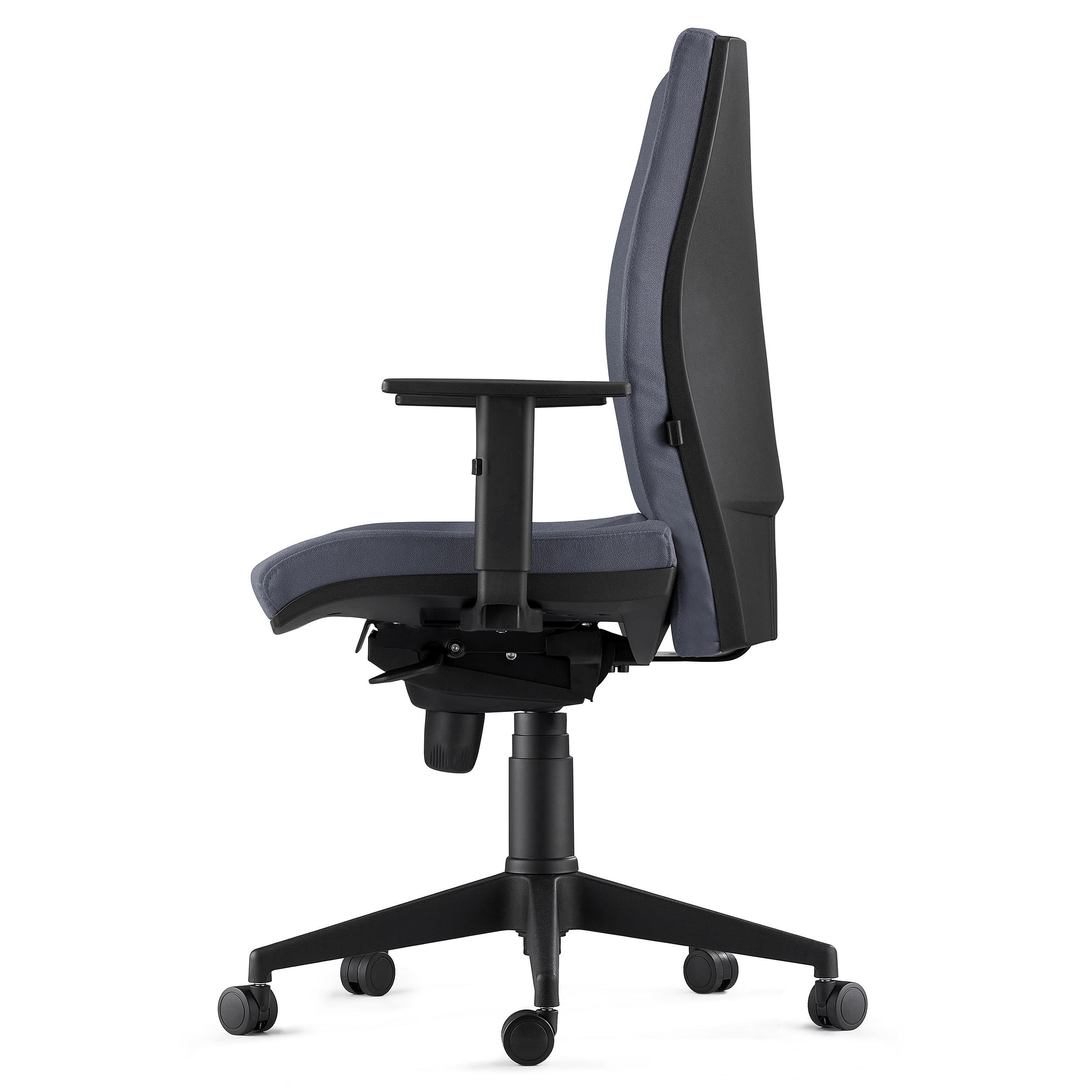 Die diversen Verstellmöglichkeiten machen dieses Modell sehr anpassungsfähig. Die Rückenlehne ist höhenverstellbar. Außerdem verfügt der Stuhl über eine Lumbalstütze und verstellbare Armlehnen.