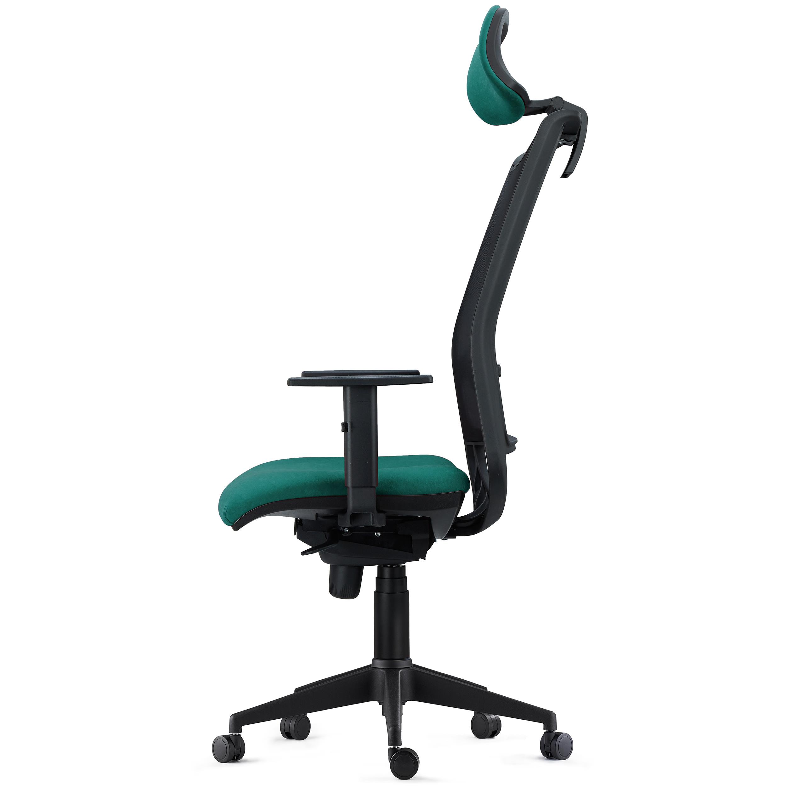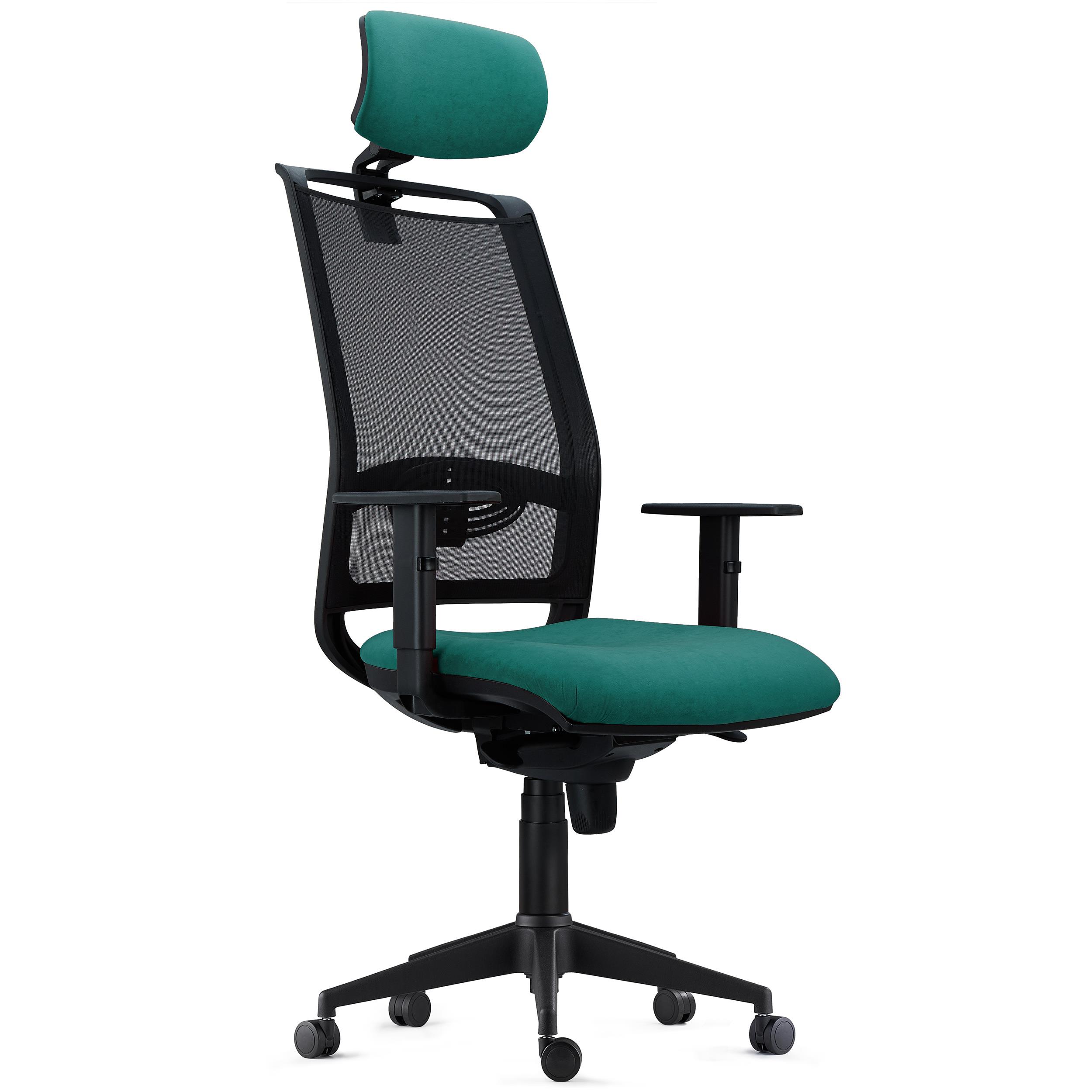 Ergonomischer Bürostuhl NEPTUNO, Kopf- und Lordosenstütze, für die 8h-Nutzung, Netz und Stoffbezug, Farbe Grün