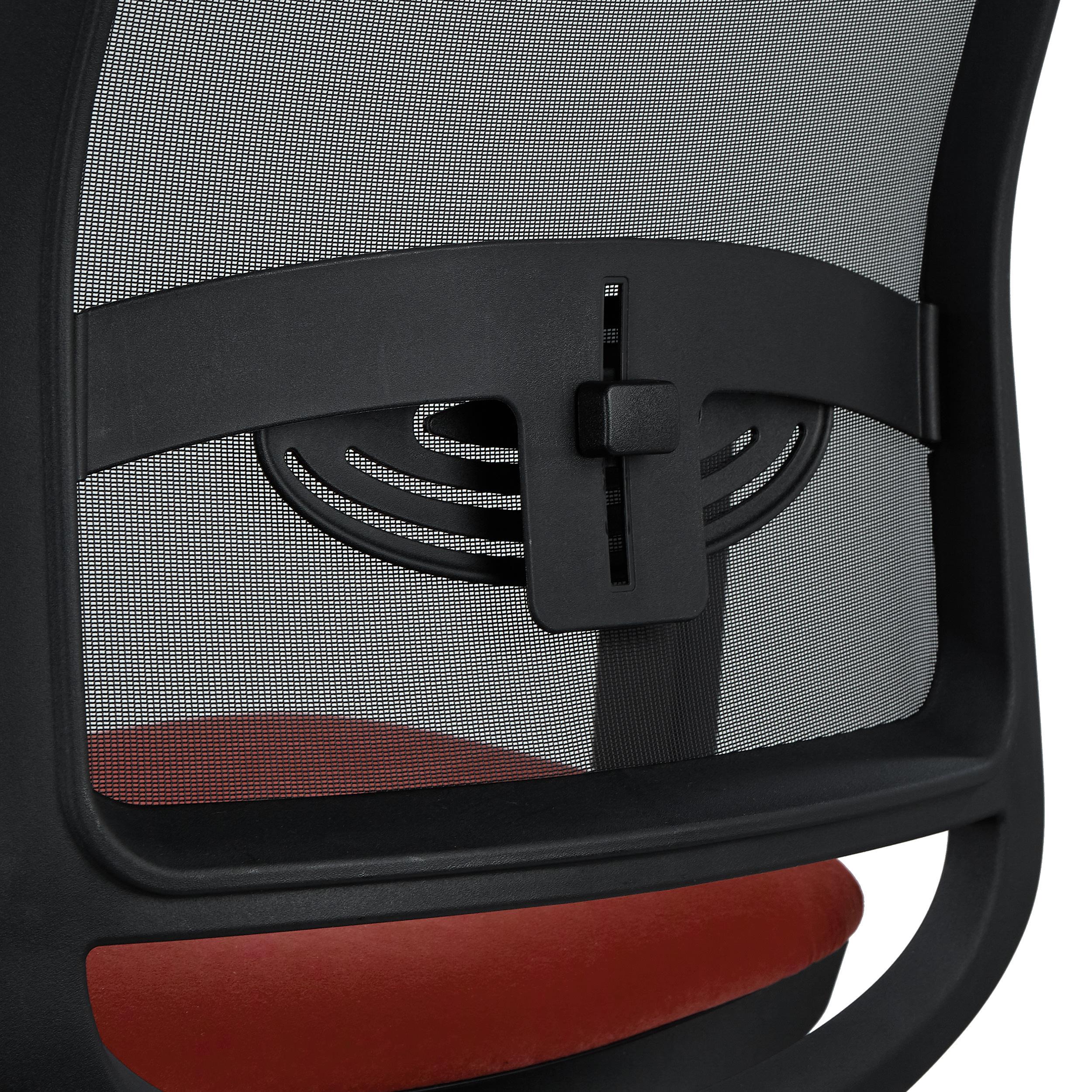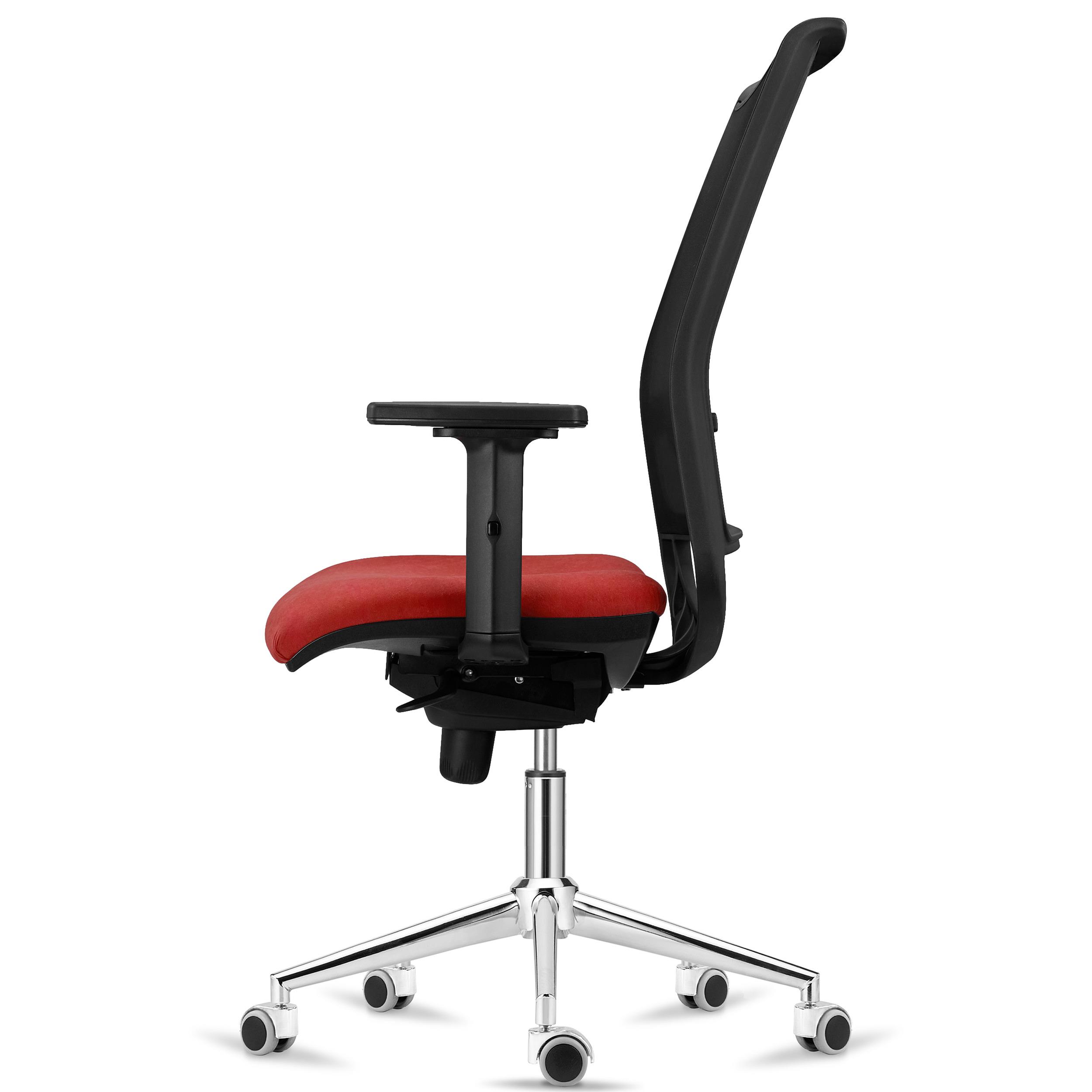 Ergonomischer Bürostuhl NEPTUNO, Metallfußkreuz & Lordosenstütze, für die 8h-Nutzung, Netz und Stoffbezug, Farbe Rot
