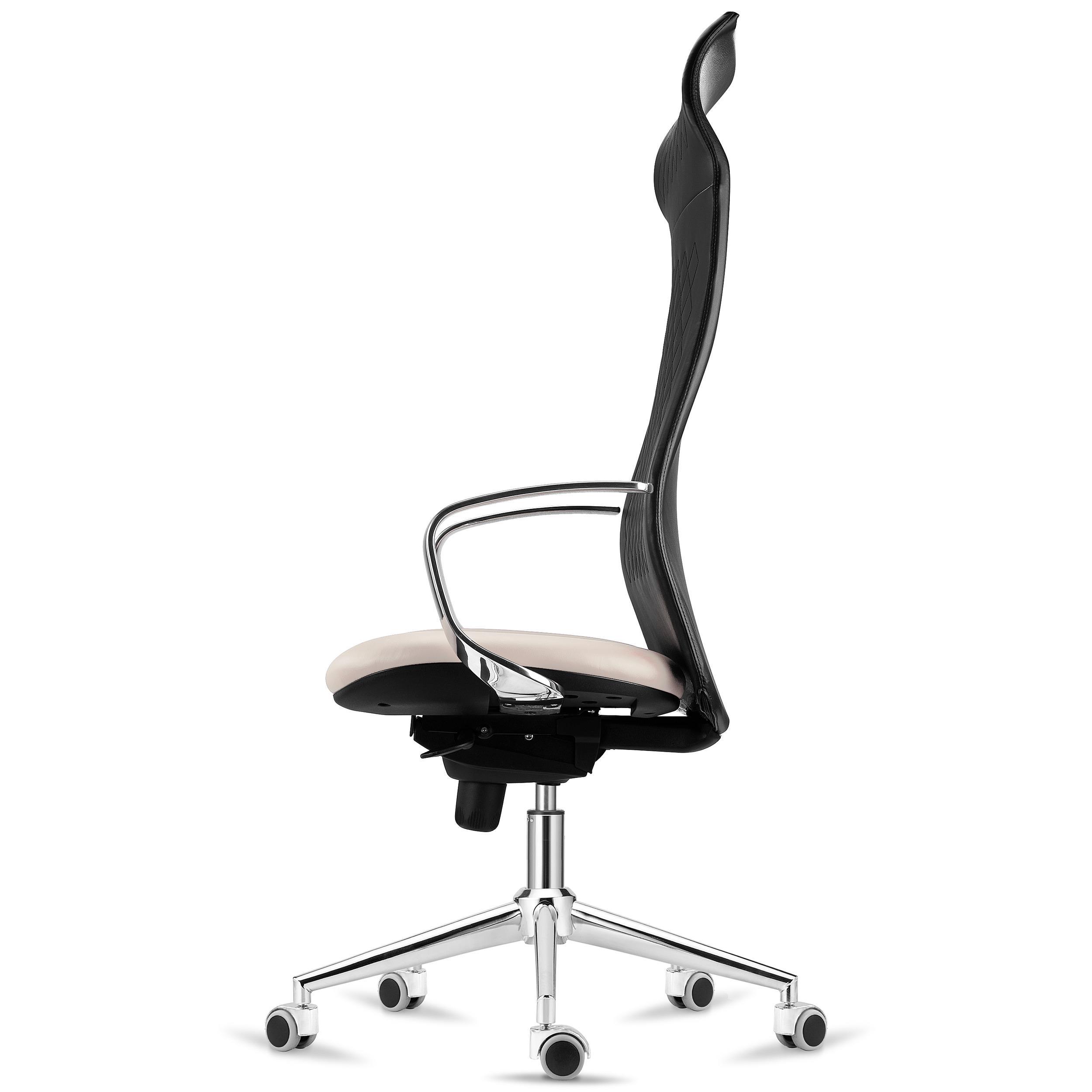 Ergonomischer Stuhl YEDA, hohe Rückenlehne, modernes Design, 8h-Nutzung, Kunstlederbezug, Farbe Beige