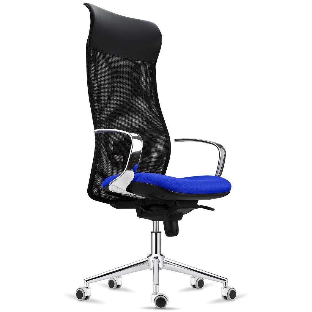 Ergonomischer Stuhl YEDA, hohe Rückenlehne, modernes Design, 8h-Nutzung, Netzbezug, Farbe Blau