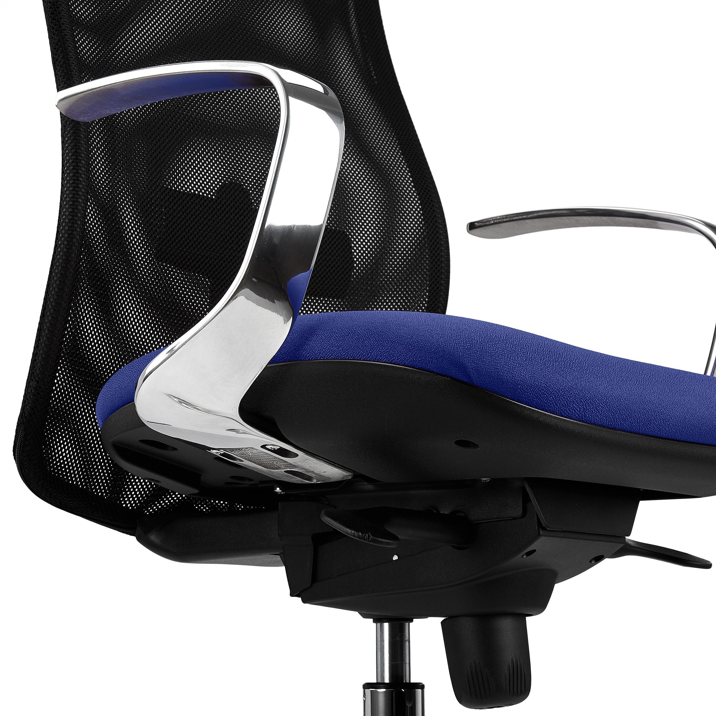 Ergonomischer Stuhl YEDA, hohe Rückenlehne, modernes Design, 8h-Nutzung, Netzbezug, Farbe Dunkelblau