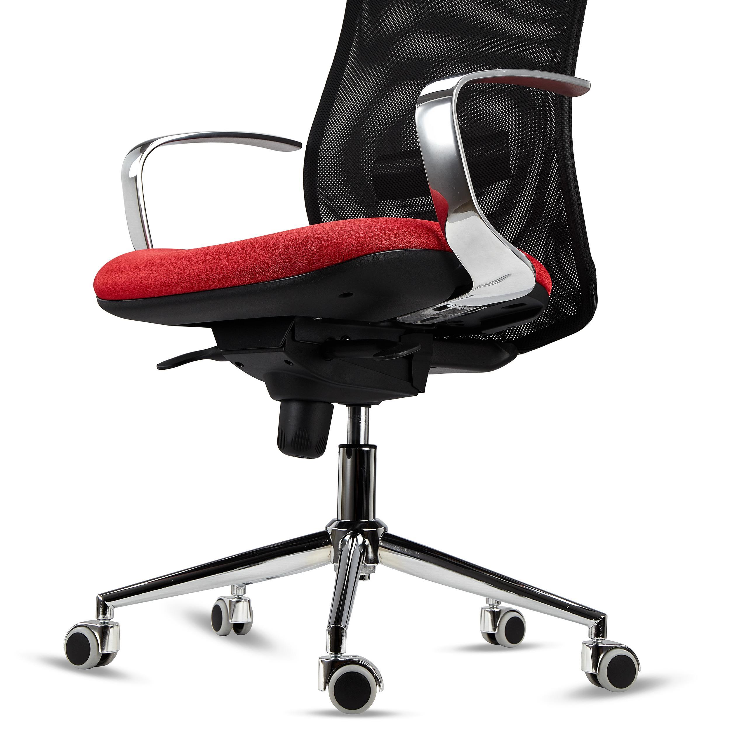 Ergonomischer Stuhl YEDA, hohe Rückenlehne, modernes Design, 8h-Nutzung, Netzbezug, Farbe Rot