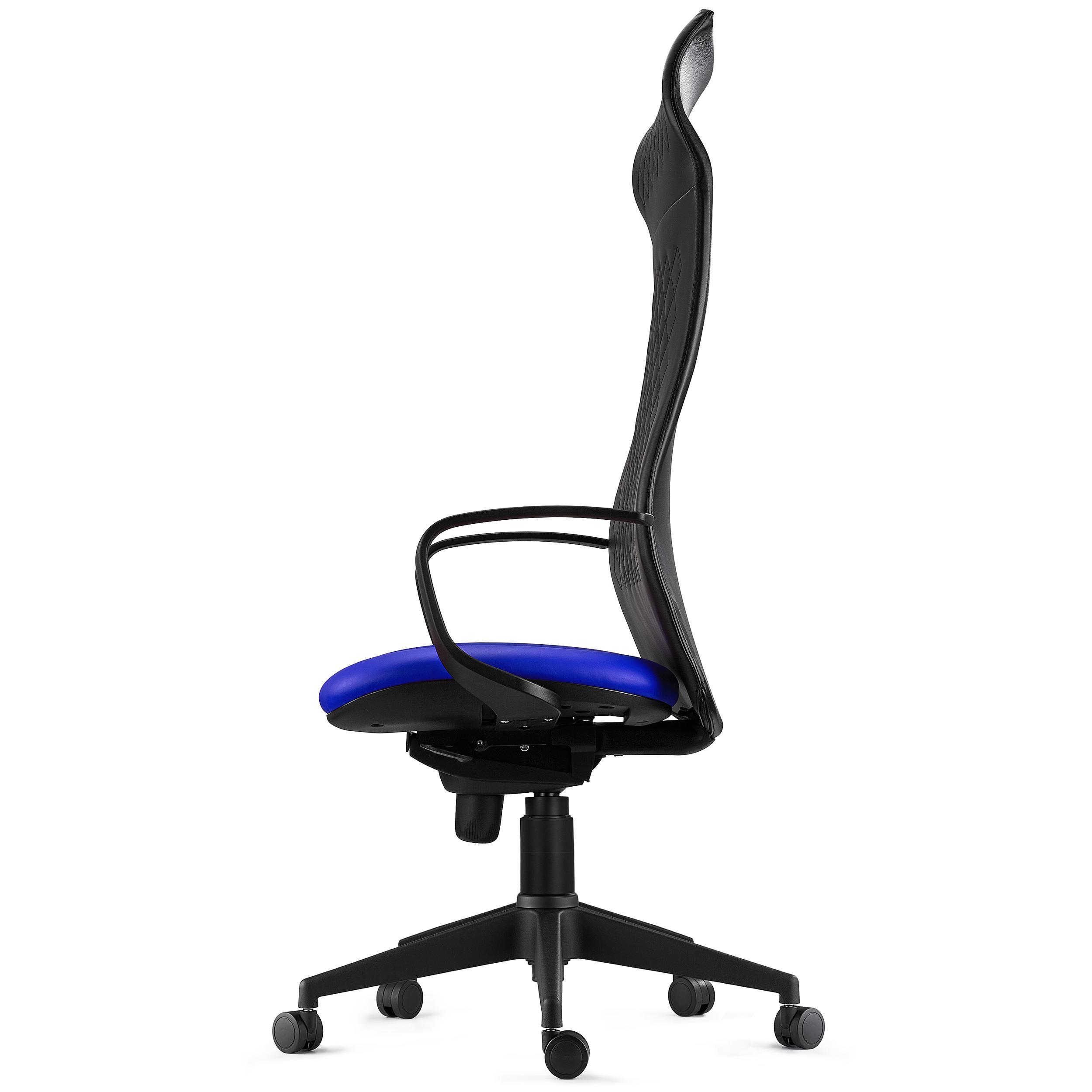 Ergonomischer Stuhl YEDA, hohe Rückenlehne, modernes Design, 8h-Nutzung, Ziernaht, Farbe Blau