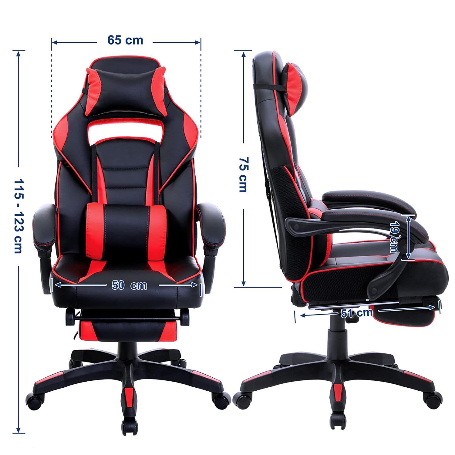 Hervorzuheben sind auch die Lenden- und Nackenpolster, die den Komfort in diesen Bereichen des Rückens erhöhen, sowie die praktische ausziehbare Fußstütze, die den Stuhl vielseitig einsetzbar macht, da man ihn sowohl als Arbeitsstuhlt als auch als Freizeitsessel zum Spielen oder einfach nur zur Entspannung verwenden kann.