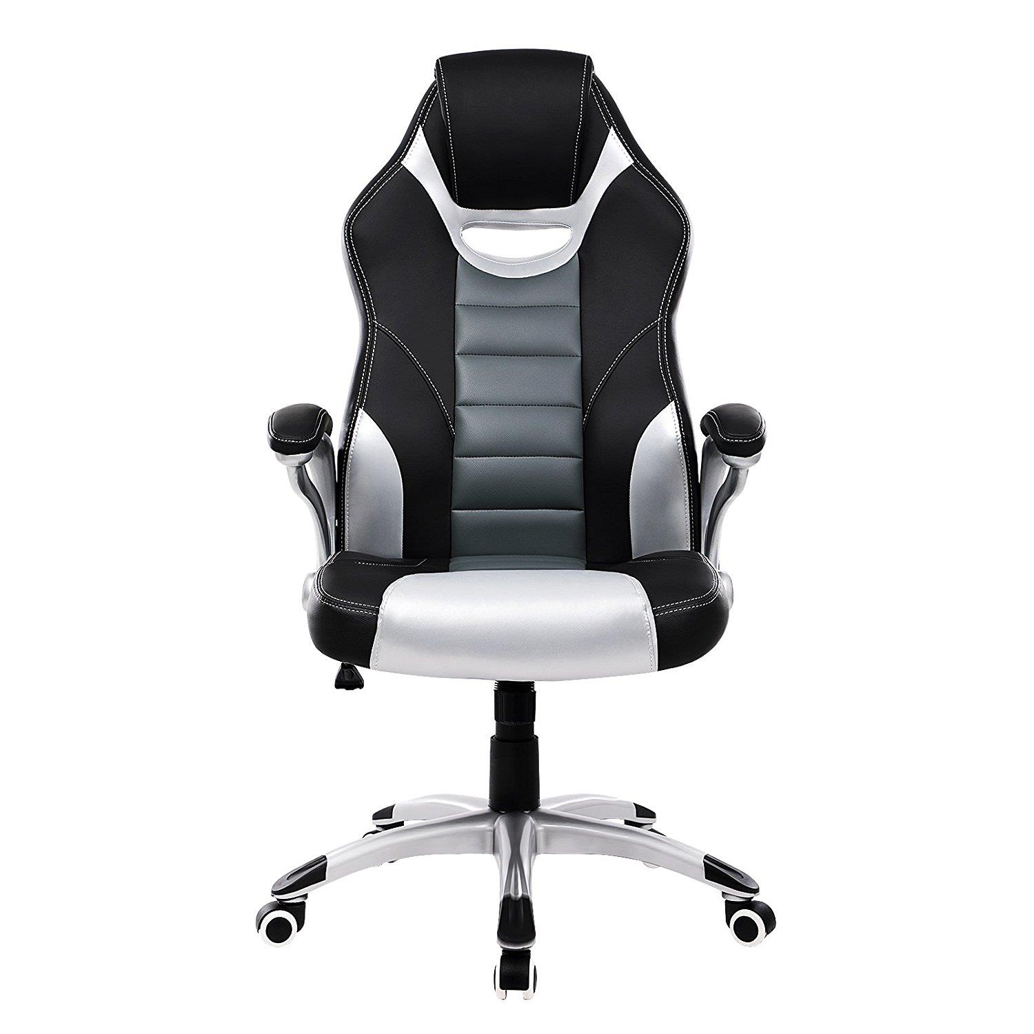 Gamingstuhl OSIRIS, dicke Polsterung, sportliches Design, Kunstlederbezug, Farbe Schwarz, Grau, Silber