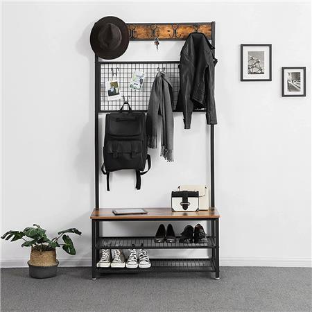 Garderobenständer OMERA, 92x41,5x187 cm, mit Ablagen, industrieller Stil, Metall und Holz, Farbe Rustik