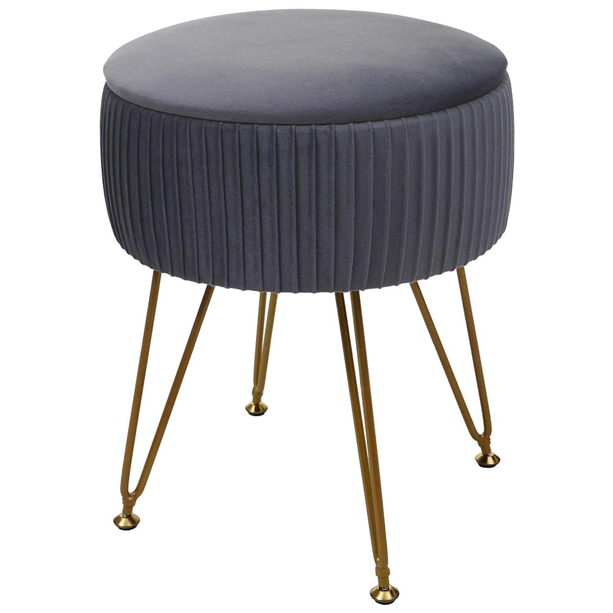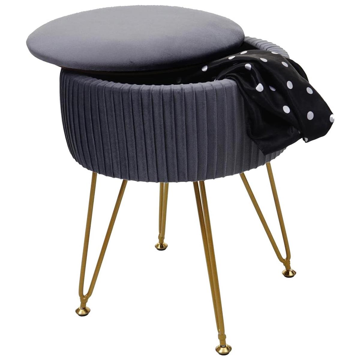 Hocker MIKO, mit Stauraum, vielseitig und praktisch, goldfarbenes Gestell, Stoffbezug, Grau