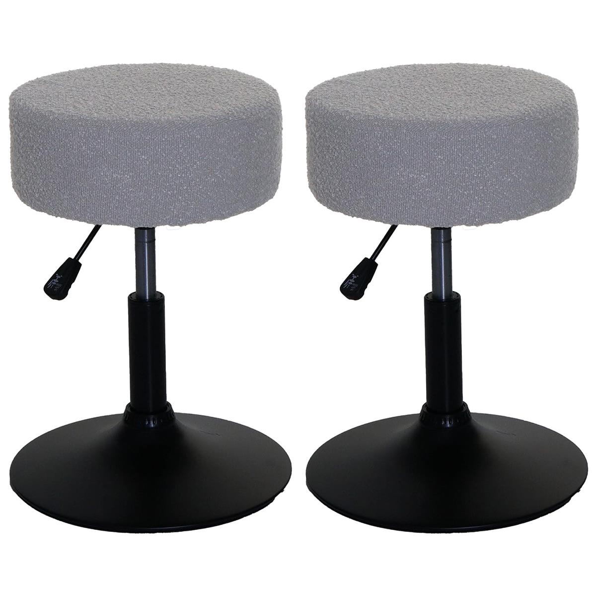Im 2er Set: Arbeitshocker BLOOM, 360º drehbar, höhenverstellbar, bequem gepolstert, Bouclé-Stoffbezug, Farbe Hellgrau