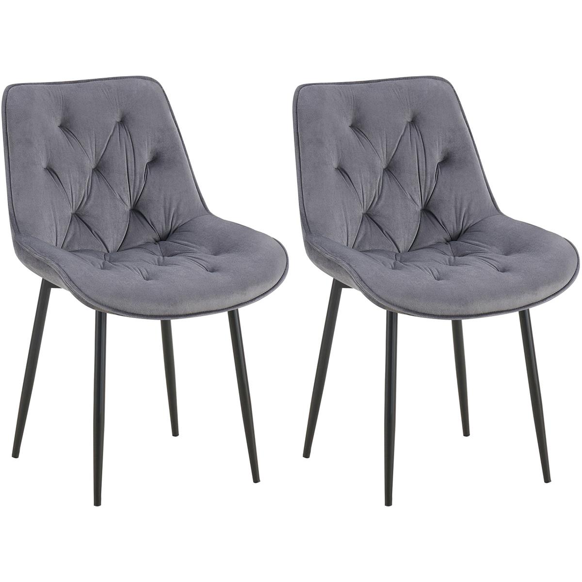 Im 2er Set: Besucherstuhl GRACE, schwarzes Metallgestell, elegantes Design in Samt, Farbe Dunkelgrau
