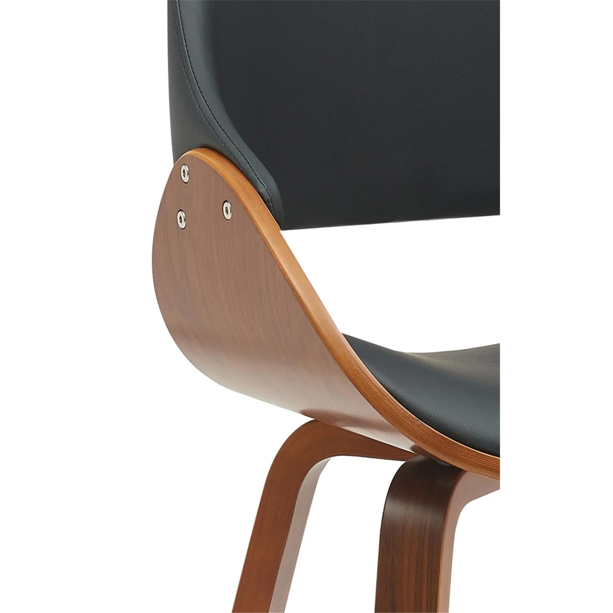 Auf den ersten Blick fällt die gebogene Holzstruktur in Walnuss-Optik durch ihre gepflegte Ästhetik und die sichtbare Maserung auf, die diesen Stuhl zu einem echten Dekorationselement machen. Sein umhüllendes Design schmiegt sich auf natürliche Weise an den Körper an und vermittelt vom ersten Moment an ein Gefühl von Komfort und Stabilität. Die weiche Polsterung von Sitzfläche und Rückenlehne verstärkt dieses Komfortgefühl noch zusätzlich.