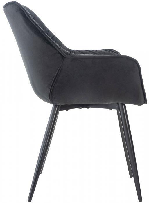 Der gepolsterte Stuhl TEXAS ist die perfekte Ergänzung für gemütliche, moderne Räume und wird zum Blickfang in jedem Zimmer. Neben seiner modernen Optik im Retro-Look besticht der sesselähnliche Sitz durch seinen hohen Komfort, der durch die erhöhten integrierten Armlehnen und den weichen Samtbezug Gemütlichkeit geradezu ausstrahlt.