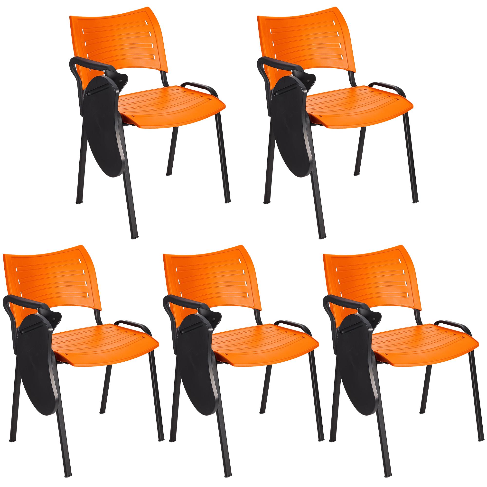 Im 5er-Set: Besucherstuhl ELVA B MIT SCHREIBBRETT, stapelbar und sehr praktisch, schwarze Stuhlbeine, Farbe Orange