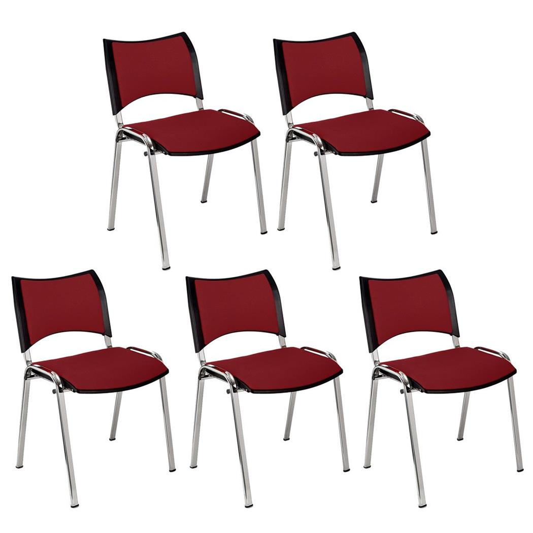 Im 5er-Set: Besucherstuhl ROMEL, bequeme Polsterung, stapelbar, verchromte Stuhlbeine, Farbe Burgund