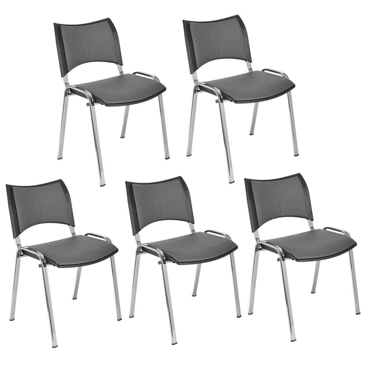 Im 5er-Set: Besucherstuhl ROMEL LEDER, bequeme Polsterung, stapelbar, verchromte Stuhlbeine, Farbe Grau