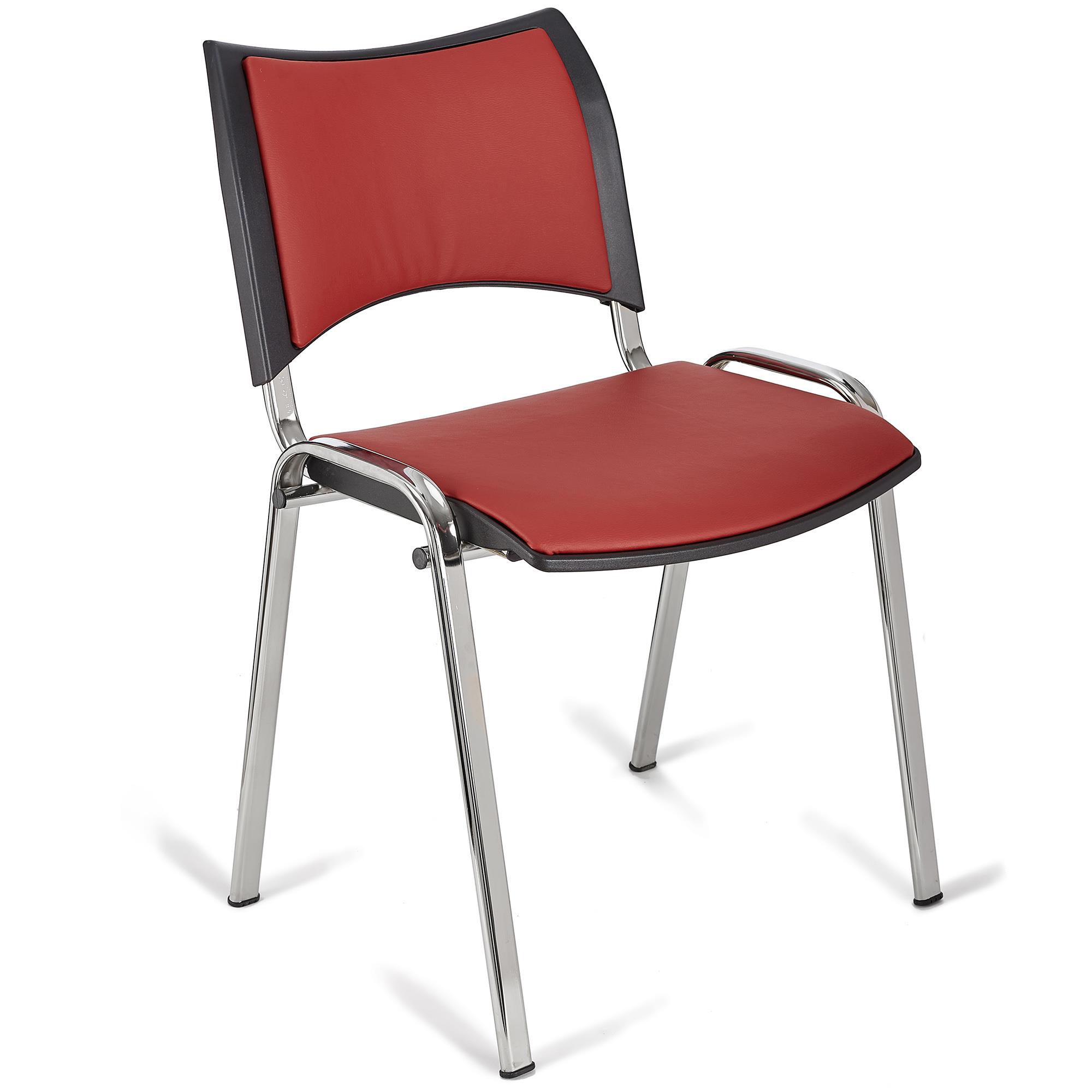 Im 5er-Set: Besucherstuhl ROMEL LEDER, bequeme Polsterung, stapelbar, verchromte Stuhlbeine, Farbe Rot